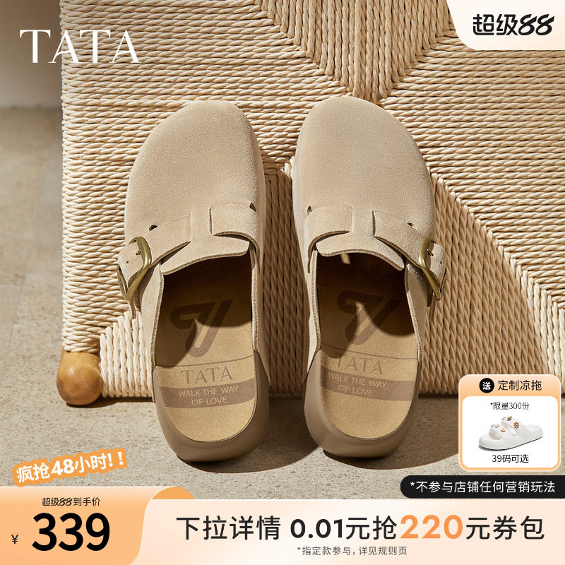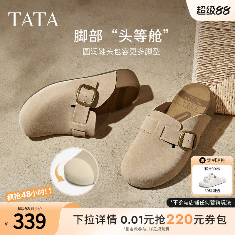 天猫他她Tata官方旗舰店,TATA他她女鞋2025秋款勃肯鞋外穿包头厚底单鞋休闲鞋拖鞋4UL01CH5,外穿时尚休闲女勃肯鞋