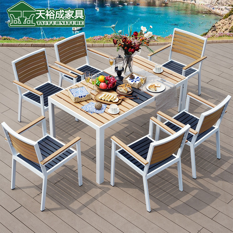 天猫天裕成家具旗舰店,户外室外咖啡厅奶茶店庭院塑木桌椅,高强度铝支架 结实耐用 防晒防水