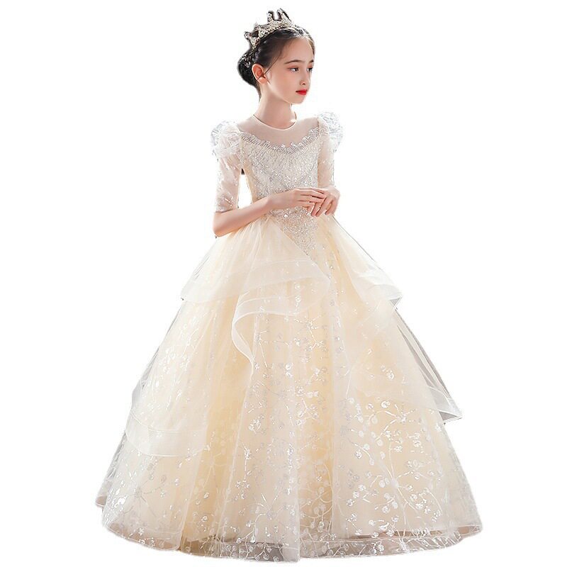 淘宝章鱼宝宝的魔法城堡,胖女童礼服裙气质高定走秀花童公主裙子连衣裙纱裙主持钢琴演出服