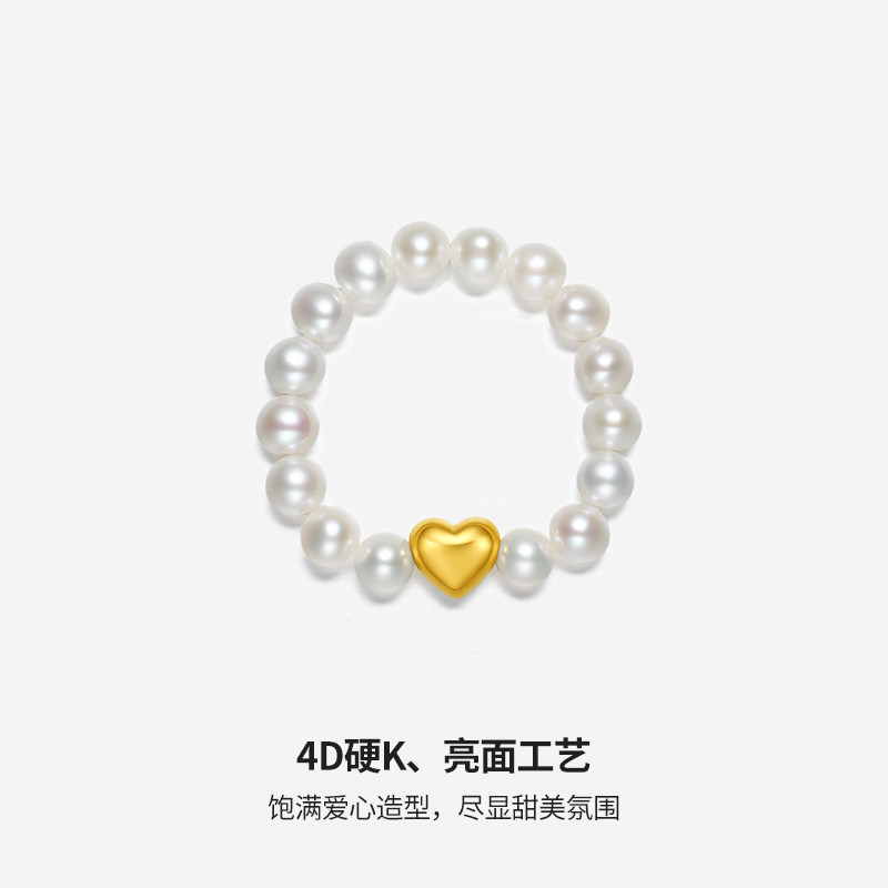 天猫周六福旗舰店,周六福黄18K珍珠爱心戒指,爱心造型 甜美时尚