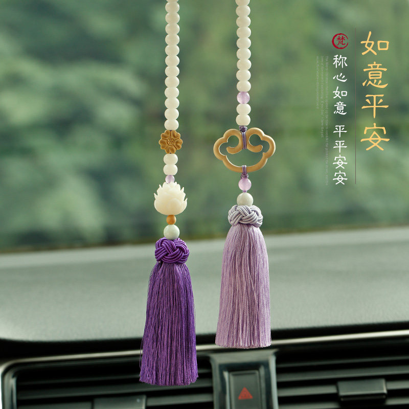 天猫153124189345298072,菩提男女士复古后视镜保平安符,天然菩提子莲花,平安如意香水车载吊饰