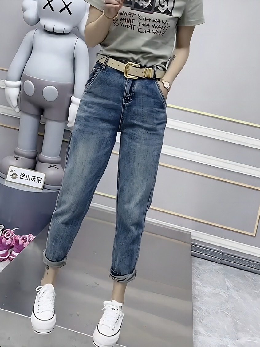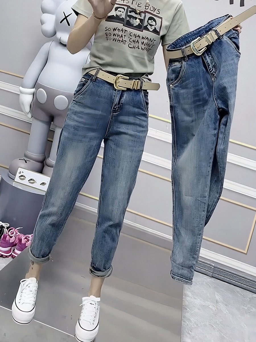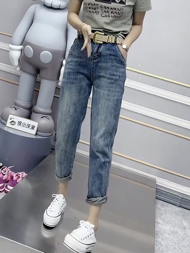 淘宝Micron微米定制大码女装,梨形身材裤子大码高腰窄版老爹裤女夏胖妹妹mm宽松显瘦九分牛仔裤