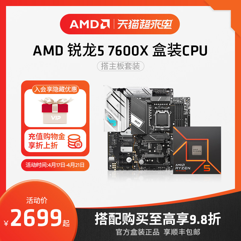 AMD锐龙5 7600X处理器搭B650/X670主板CPU盒装主机台式机板U套装