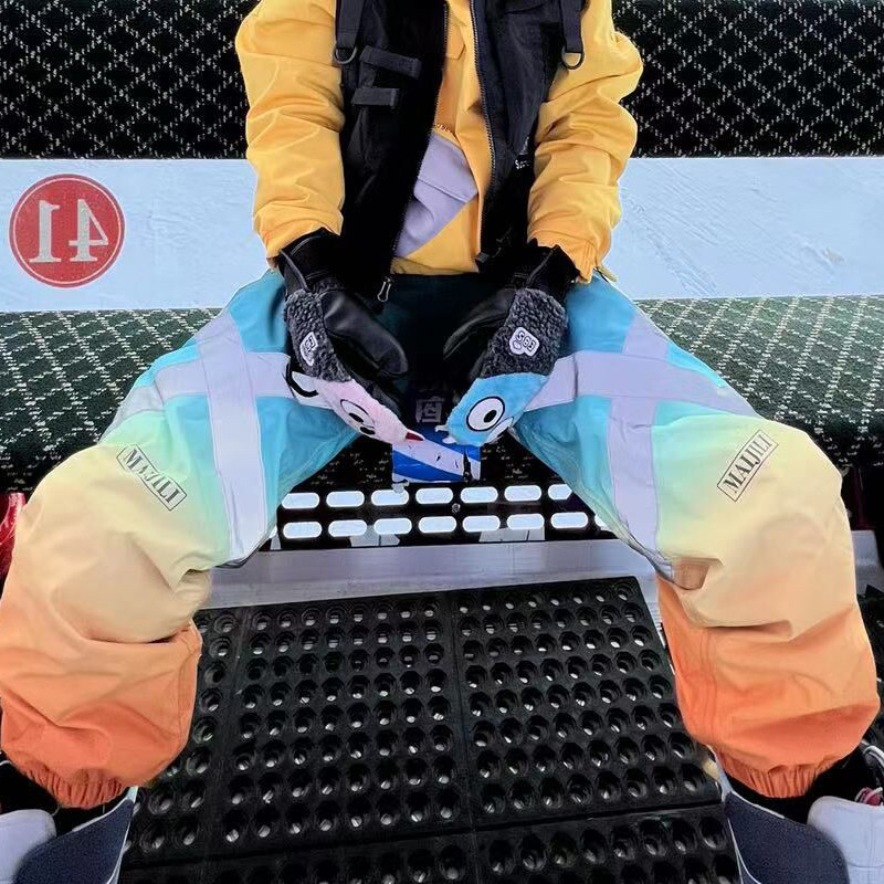 滑雪裤单板反光潮耍酷男女保暖防水耐磨全封胶束脚扎染韩版滑雪裤