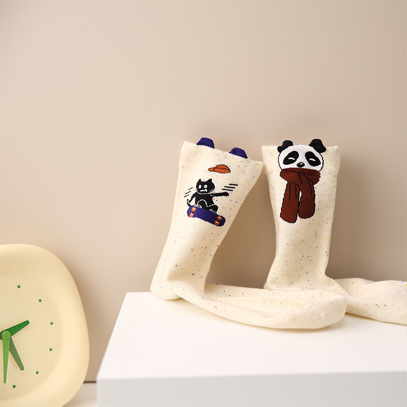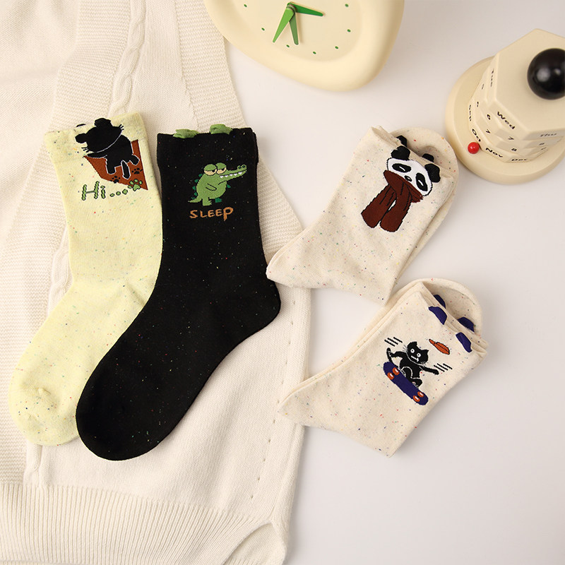 淘宝不会丢的袜子,不会丢的袜子 立体趣味卡通中筒袜女日系可爱熊猫春秋款无骨长袜