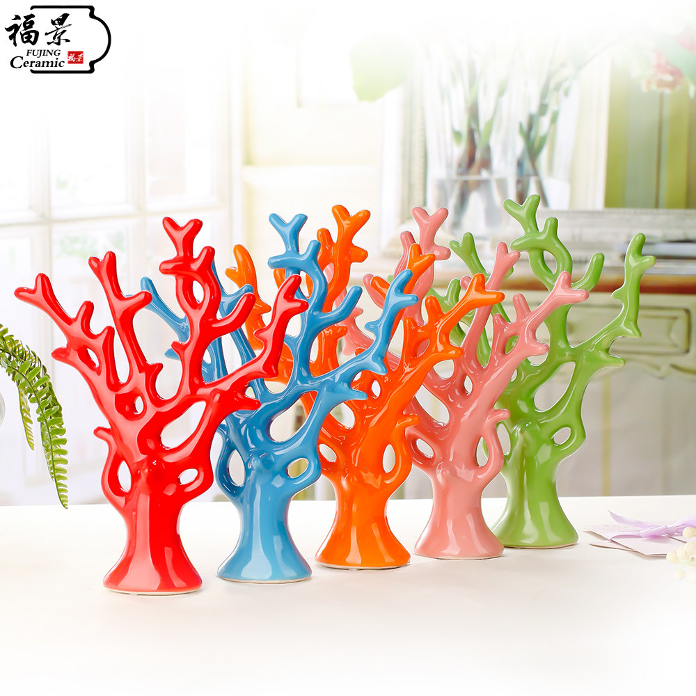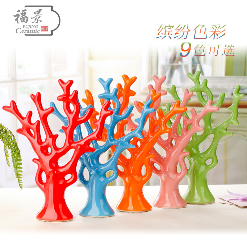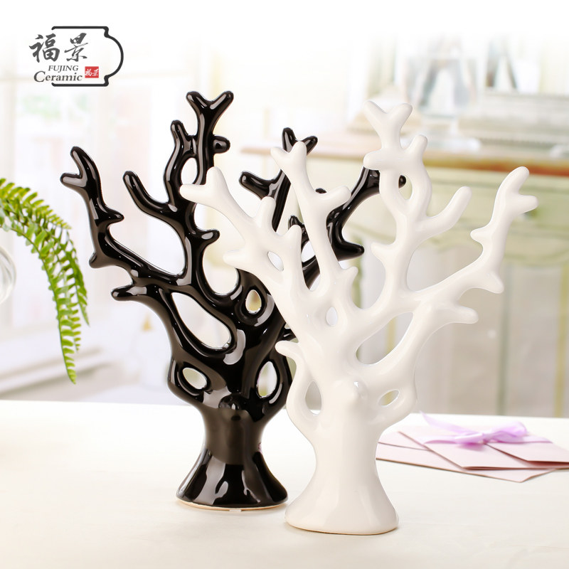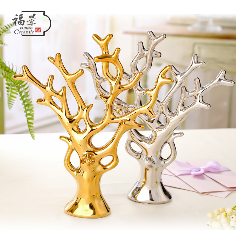 福景家居创意玄关客厅摆件工艺品现代简约陶瓷发财树酒柜摆设