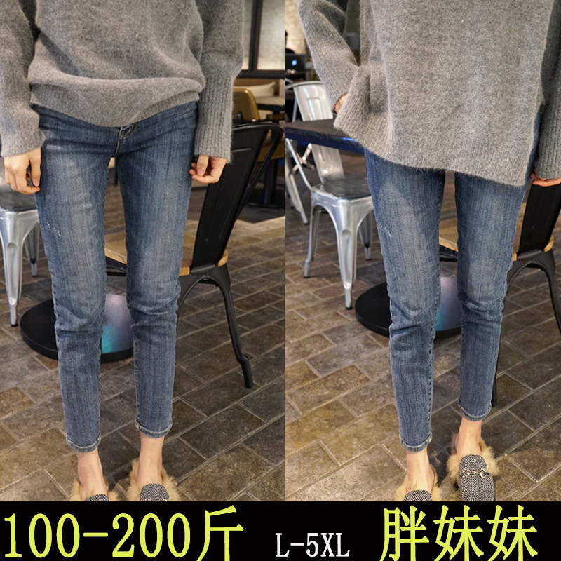 大码牛仔九分裤女弹力胖妹妹2020年秋款弹力韩版小脚裤显瘦铅笔裤
