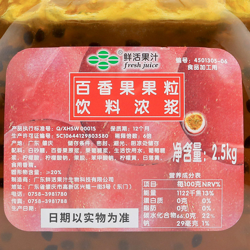 鲜活果汁2.5 kg果粒果酱百香果酱