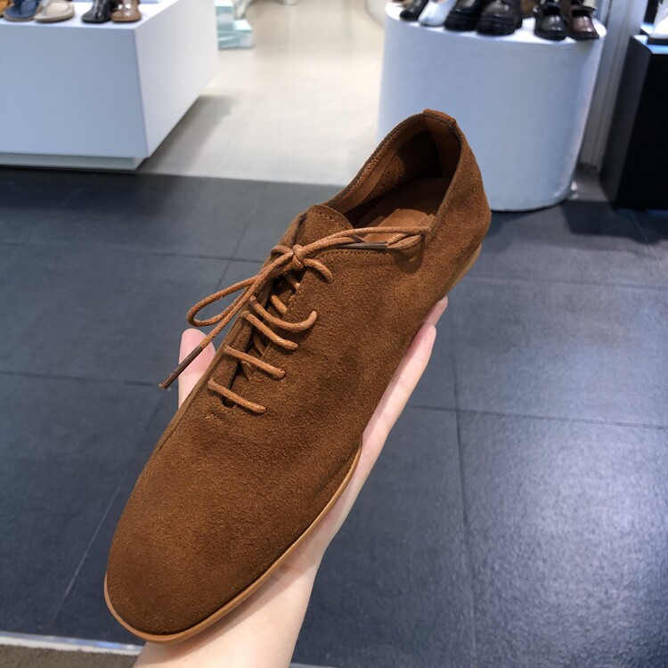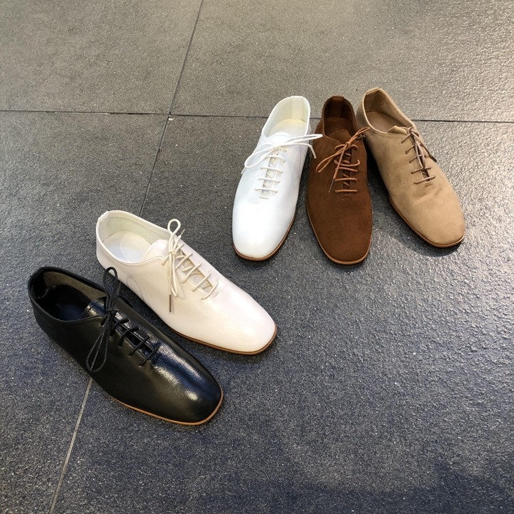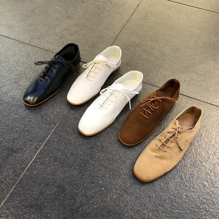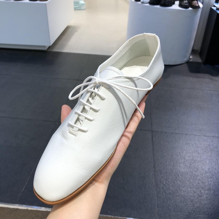 小池在首尔2022年春季新款圆头深口系带舒适平跟单鞋休闲小白鞋女