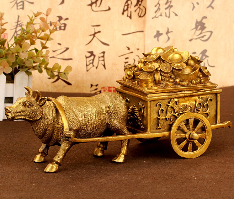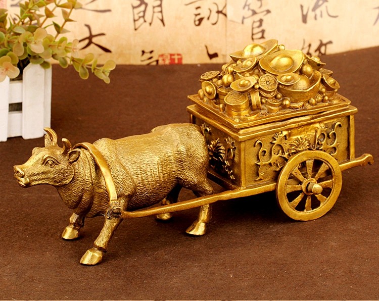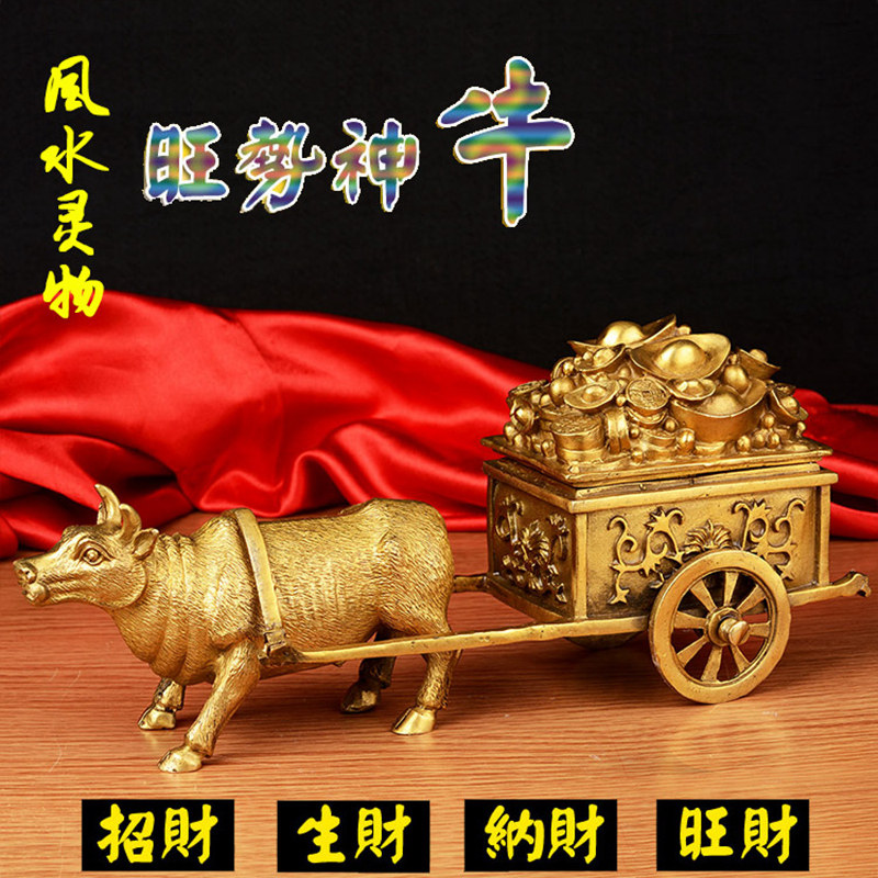 淘宝风水阁品牌店,纯铜招财牛拉车拉元宝车风水生肖牛