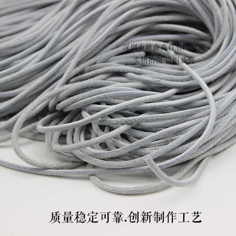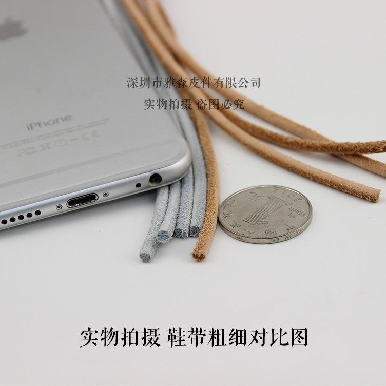 淘宝深圳雅森鞋带,圆形浅灰色头层牛皮毛面缠绕鞋带