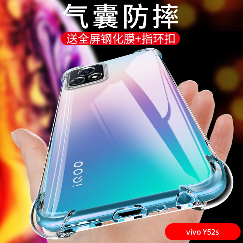 天猫尚米乐数码专营店,vivoy52s y52s全包硅胶四角款手机壳,四角真气囊防摔软壳 送全屏钢化膜+指环扣