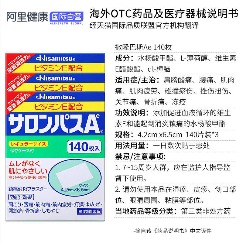 天猫阿里健康大药房海外店,【保税仓发货】日本撒隆巴斯腰肩膏药