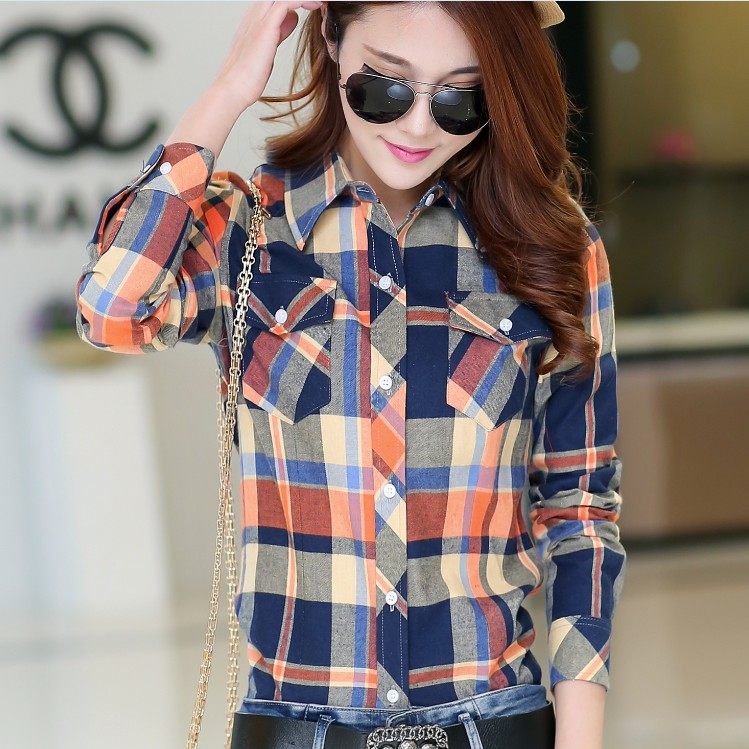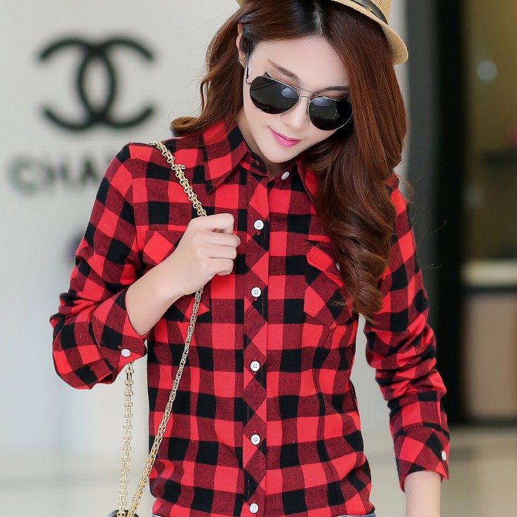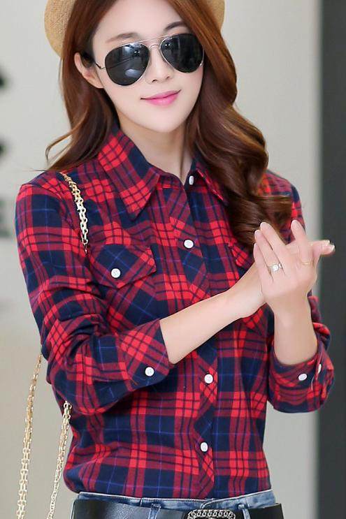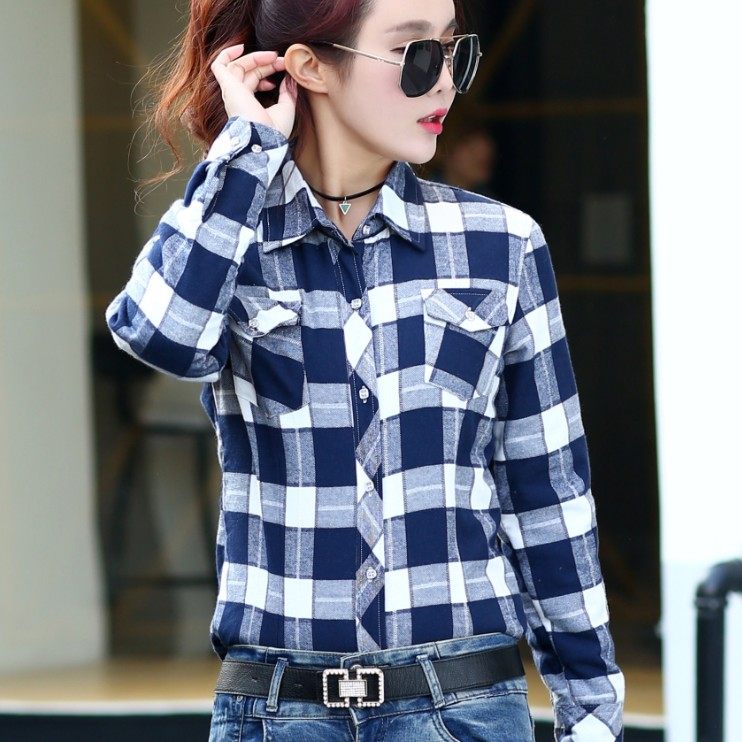 淘宝女式衬衫工厂店,格子长袖韩范学院风春秋新款衬衫