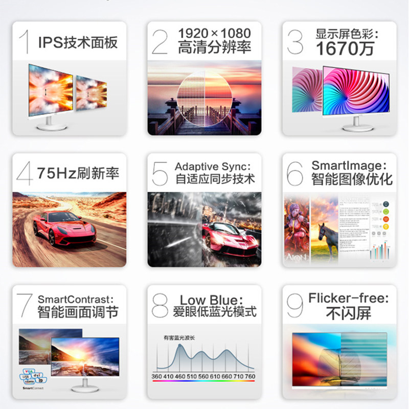 天猫philips显示器旗舰店,飞利浦24英寸显示器 屏幕电竞台式电脑高清显示屏窄边低蓝光241I8,IPS面板,低蓝光 显示器