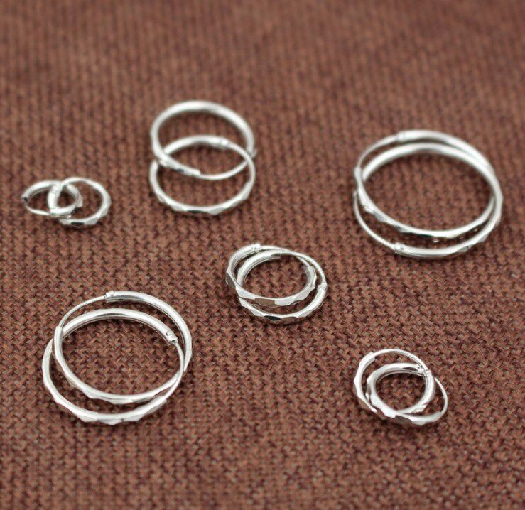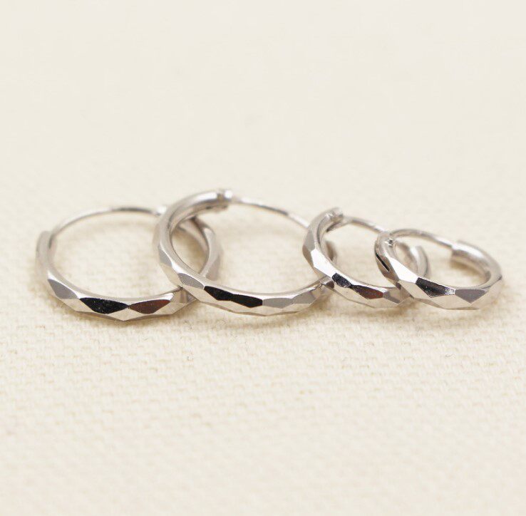 新品棱形表面925纯银耳环女耳扣男耳骨小耳圈耳钉小圈圈耳针超细