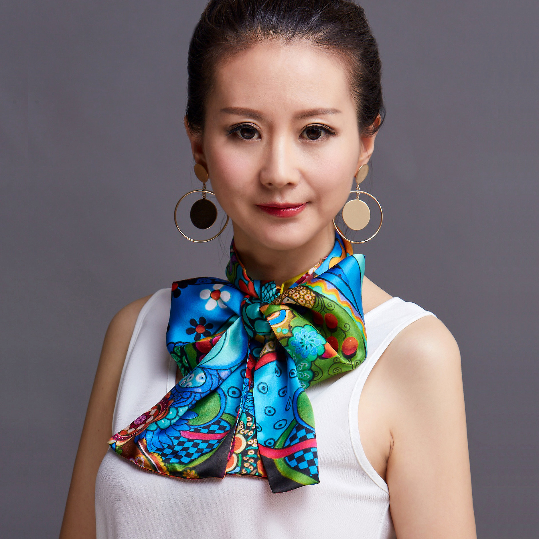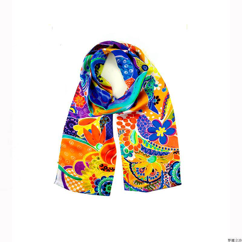 孙立沙画家原创艺术高档丝巾桑蚕丝真丝礼品夏季流行长条巾油画风