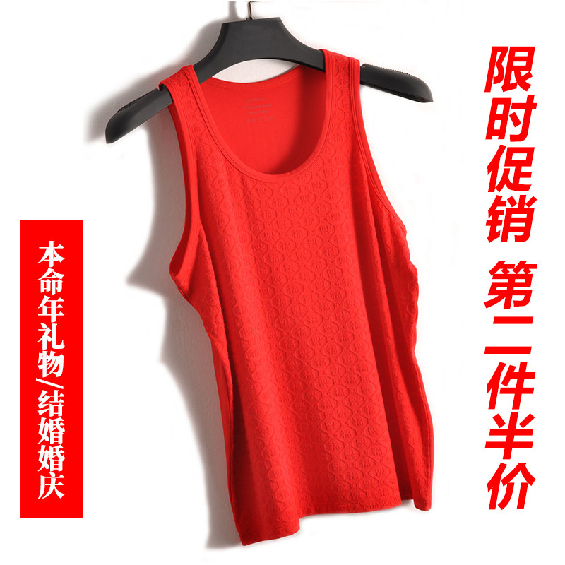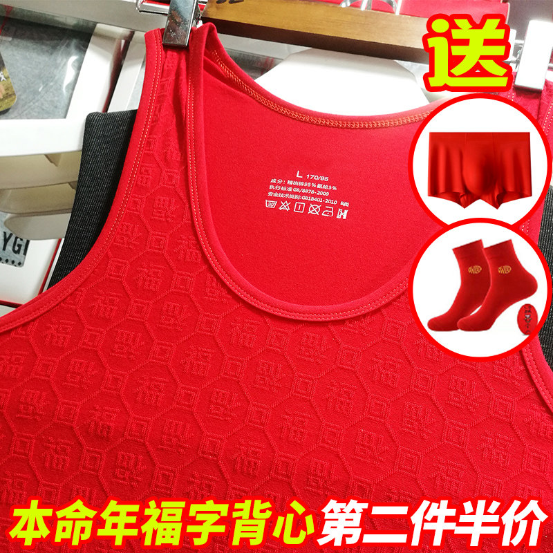 淘宝勇发针织,本命年大红色纯棉背心男士福字