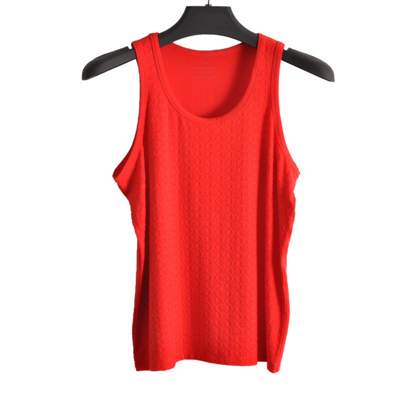 本命年福字男士纯棉背心弹力大红色圆领跨栏吊带刺绣婚庆结婚背心
