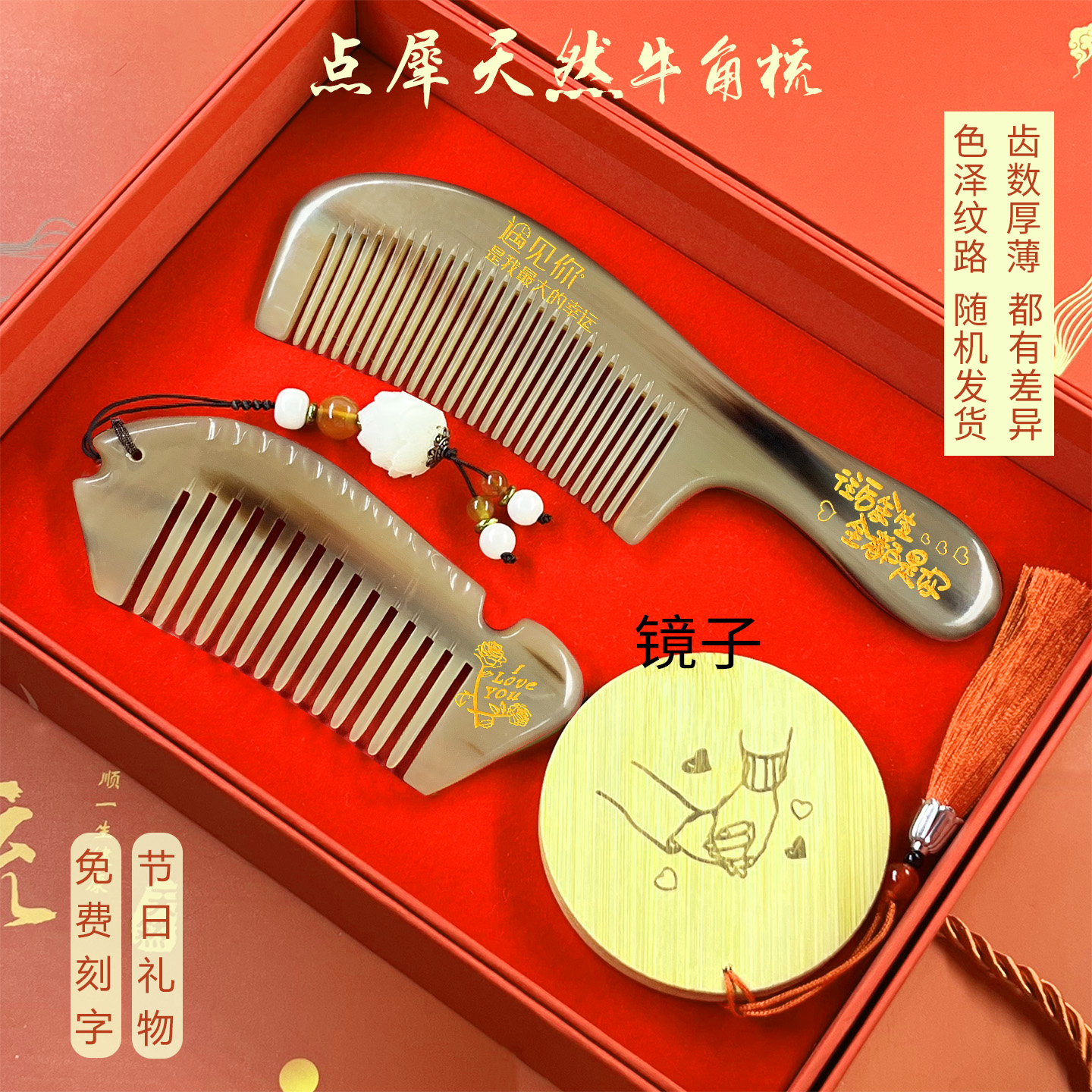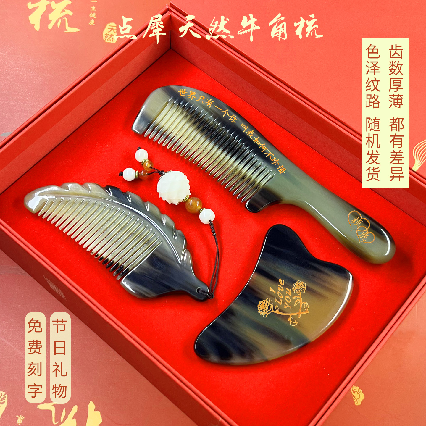 淘宝点犀天然牛角梳子,天然牛角梳子送老婆生日礼物刻字
