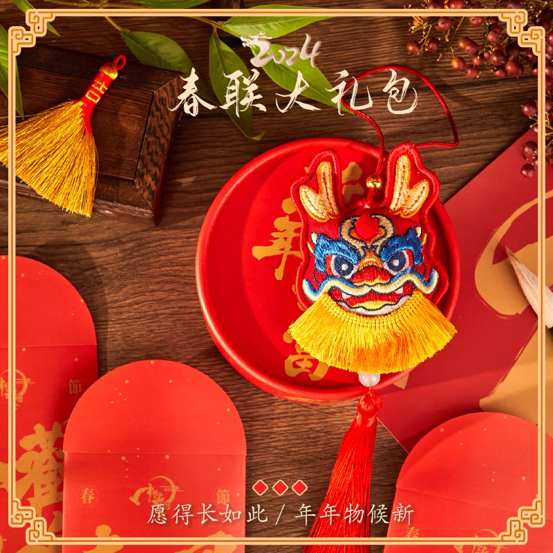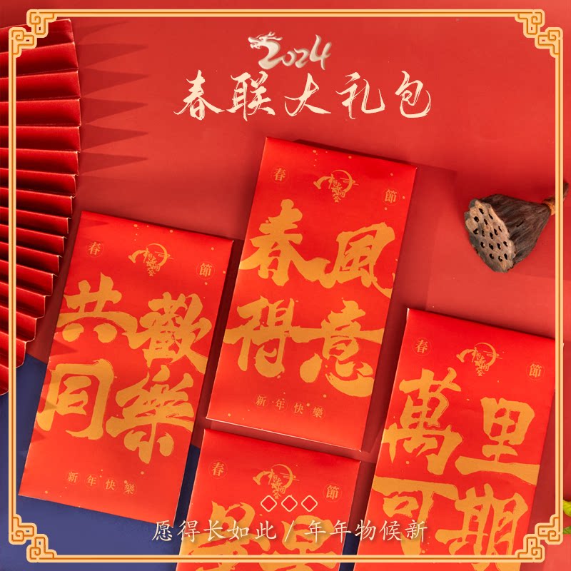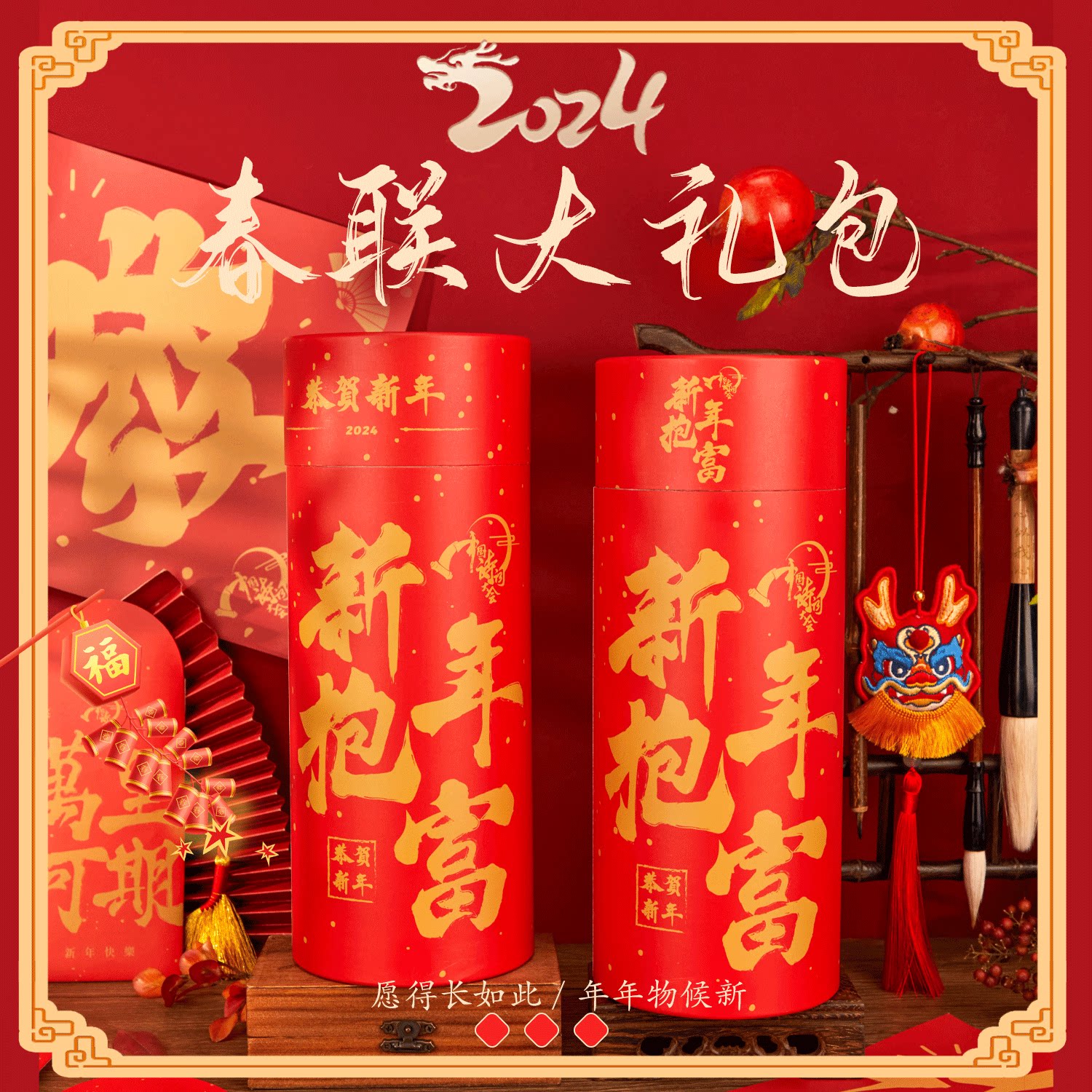 天猫中国诗词大会文创旗舰店,2024龙年抱富桶对联春联款春节过年红包装饰