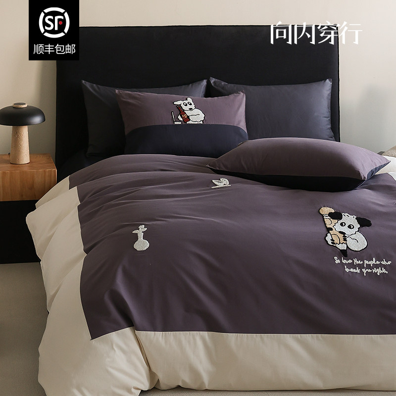 向内穿行长绒棉100全棉小狗毛巾绣床上四件套纯棉床单笠卡通床品