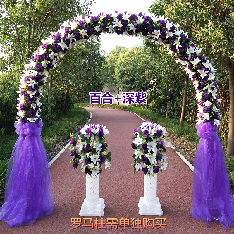 新款全花花门婚庆绢花拱门开业庆典欧式花门百合系绢花幸福门花架