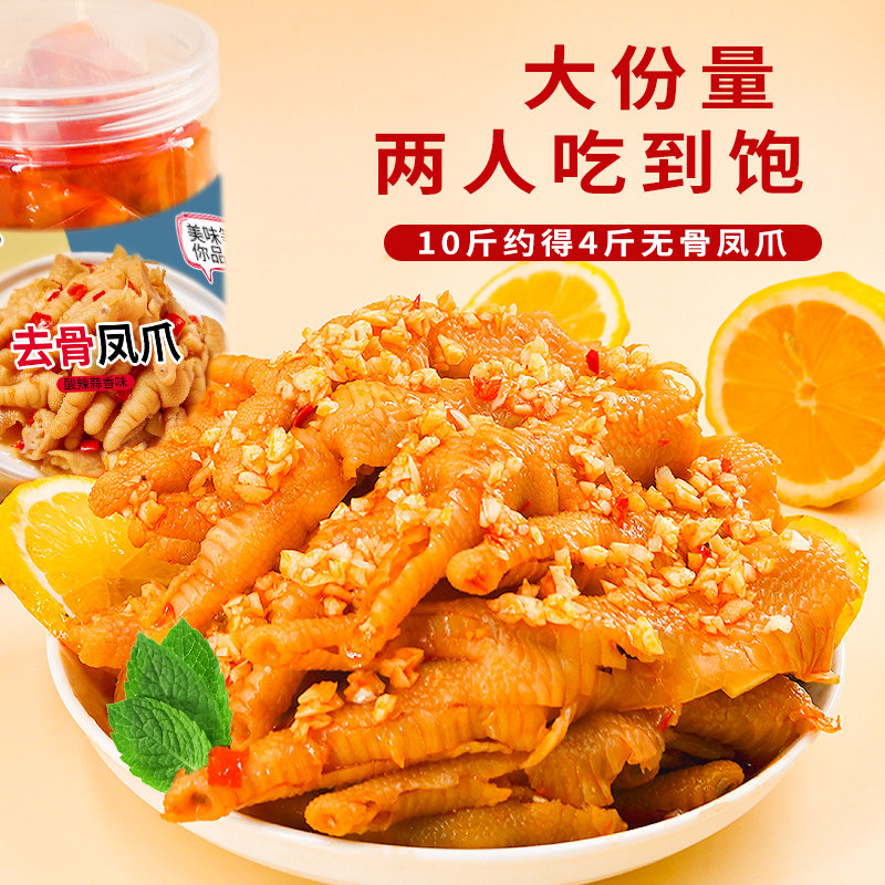 无骨鸡爪柠檬酸辣蒜香网红去骨即食凤爪