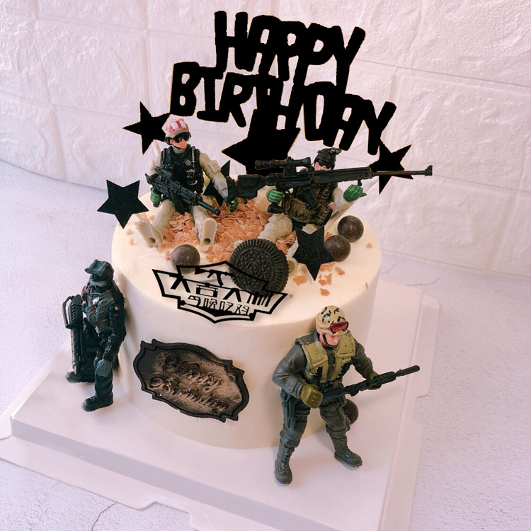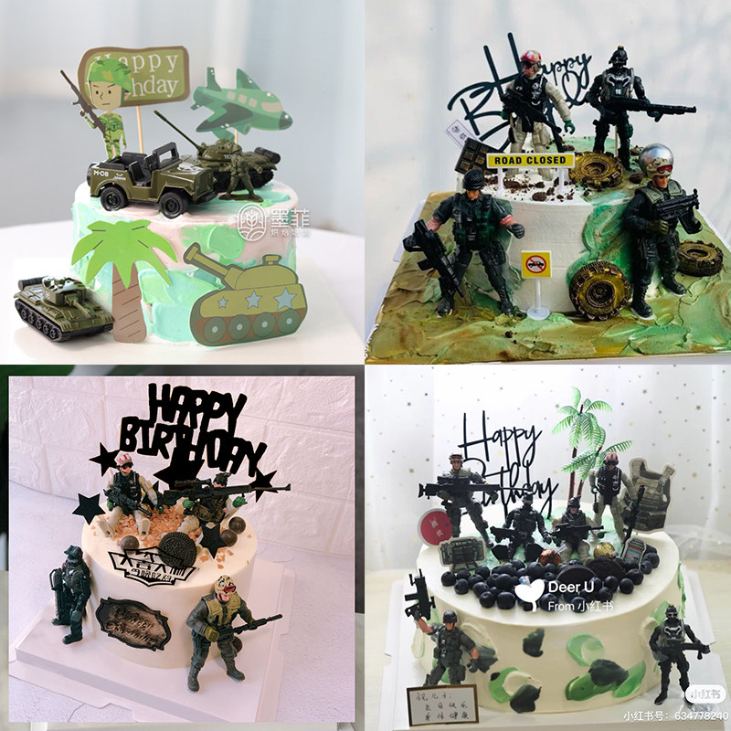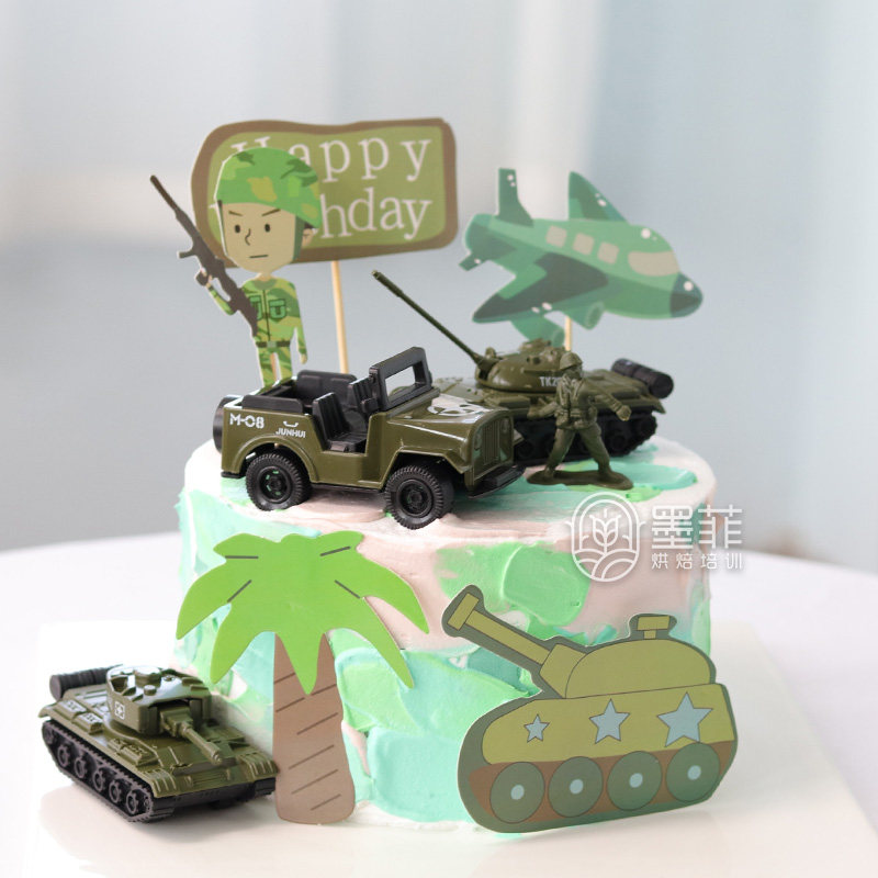 网红创意军事坦克飞机士兵儿童过生日蛋糕装饰摆件插件甜品台装扮