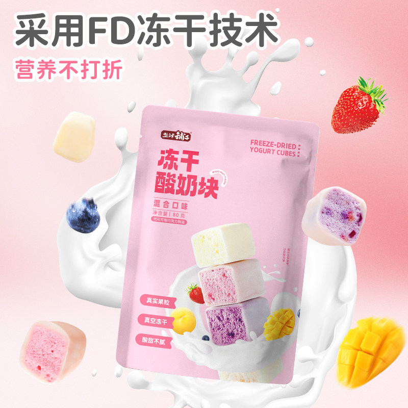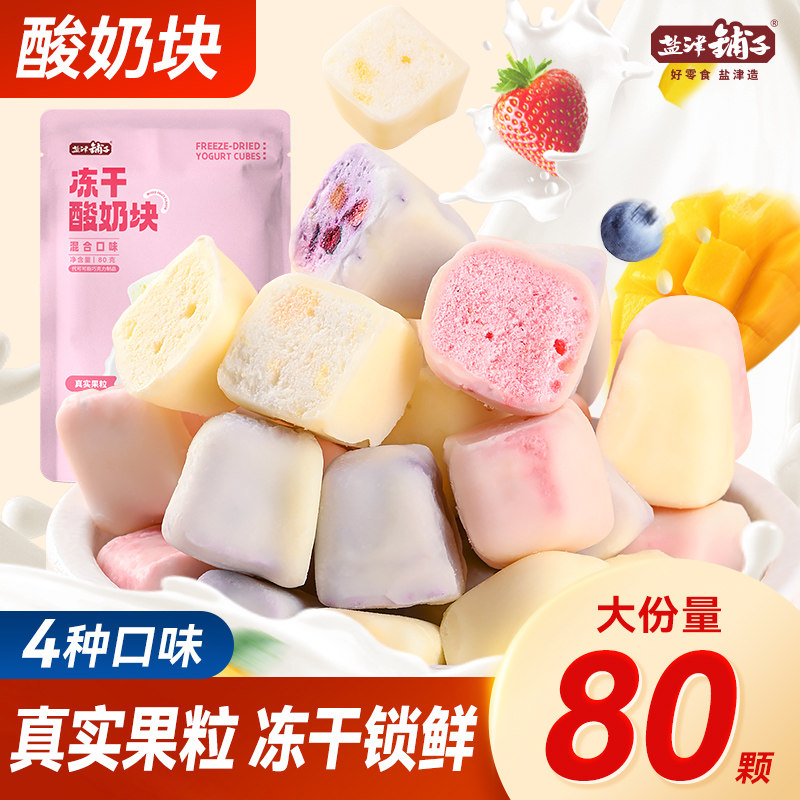 盐津铺子冻干酸奶块水果干草莓蓝莓黄桃芒果干办公室网红零食小吃