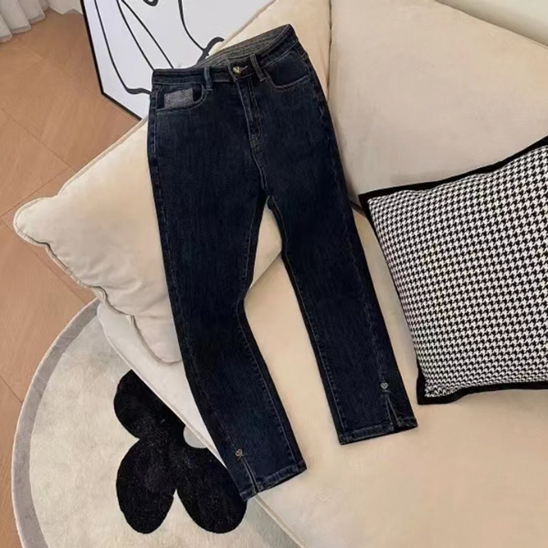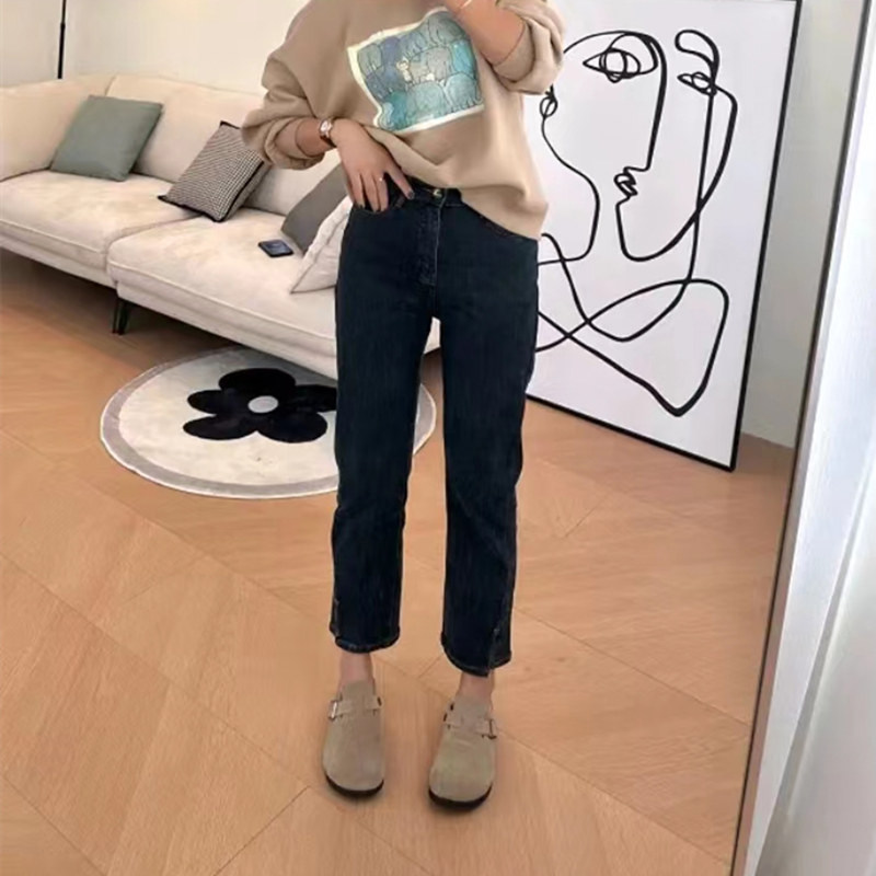 秋季2023新款女装胖妹妹显瘦裤子女大码高腰弹力开叉直筒牛仔裤女