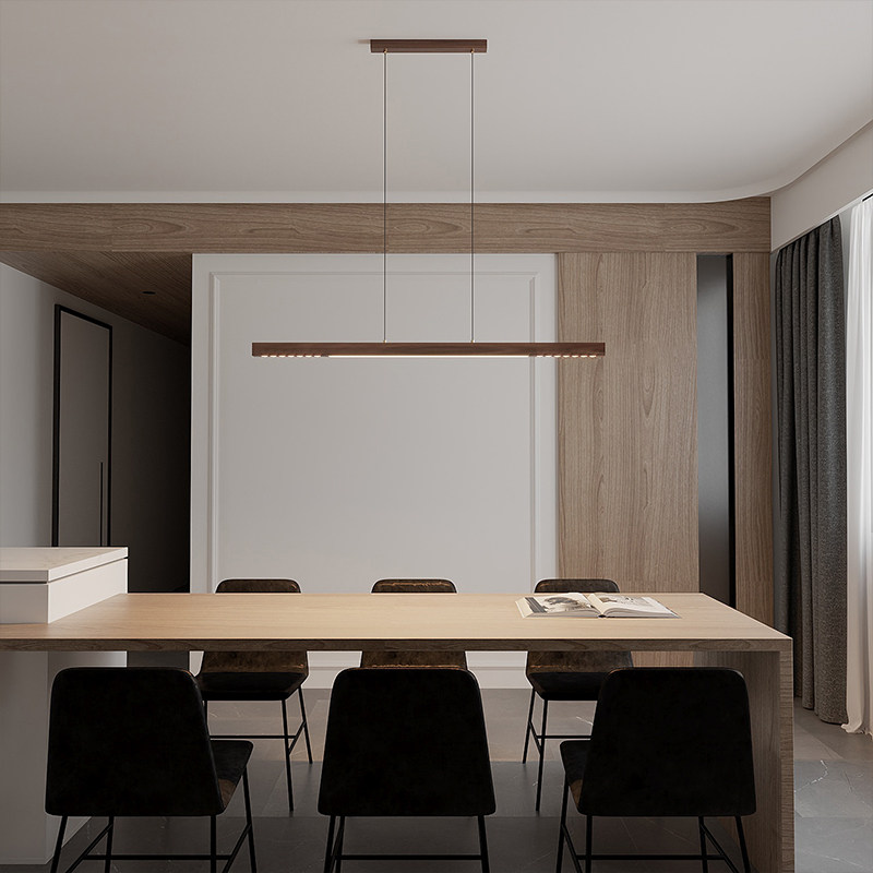 餐厅吊灯实木一字长条极简现代轻奢中古吧台新中式餐桌茶室前台灯