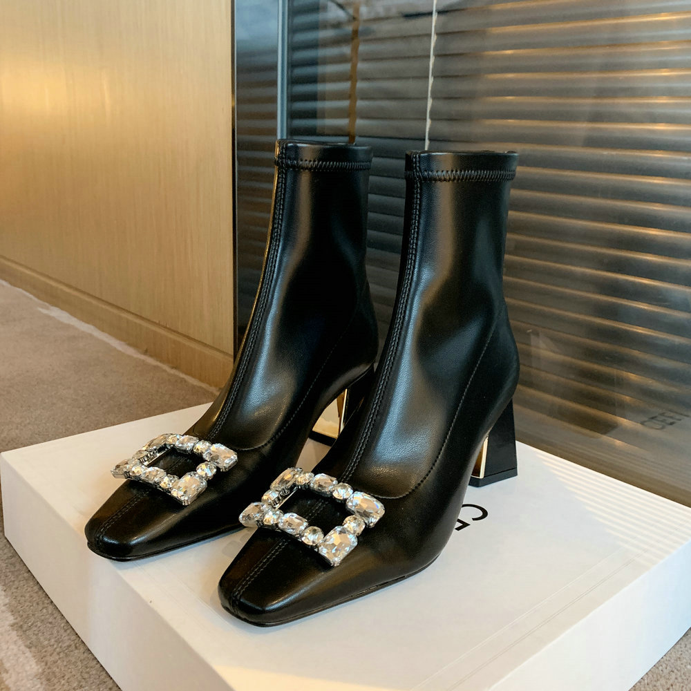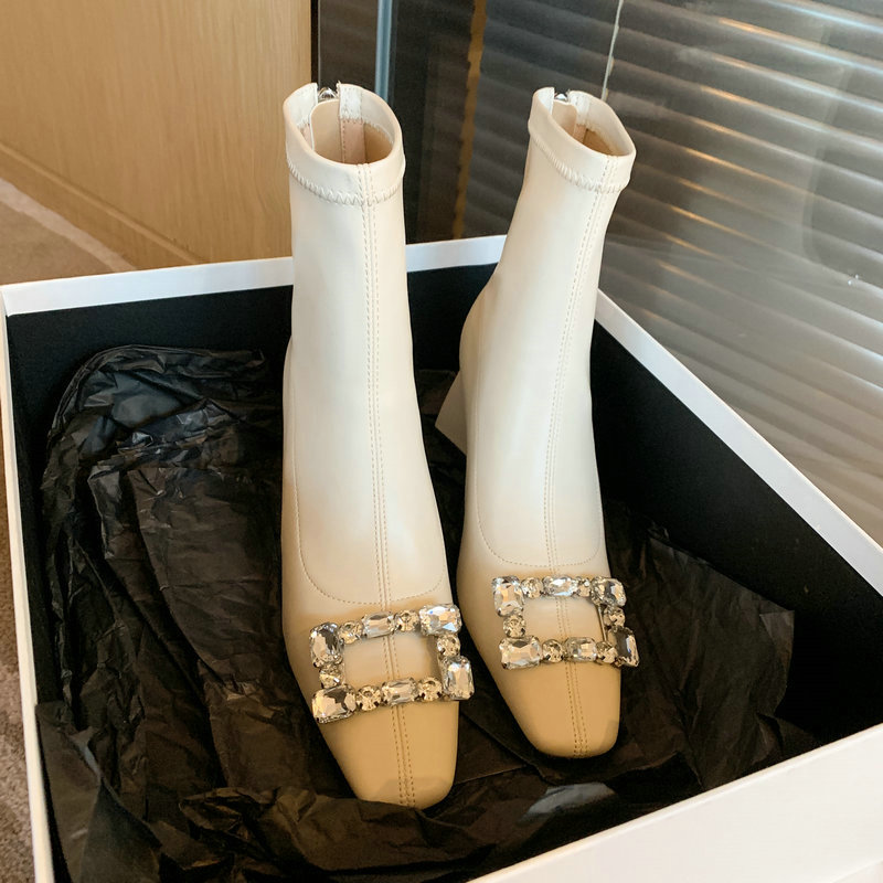 淘宝香水百合女人访,SHERO牧野瘦瘦短靴粗跟水钻方扣