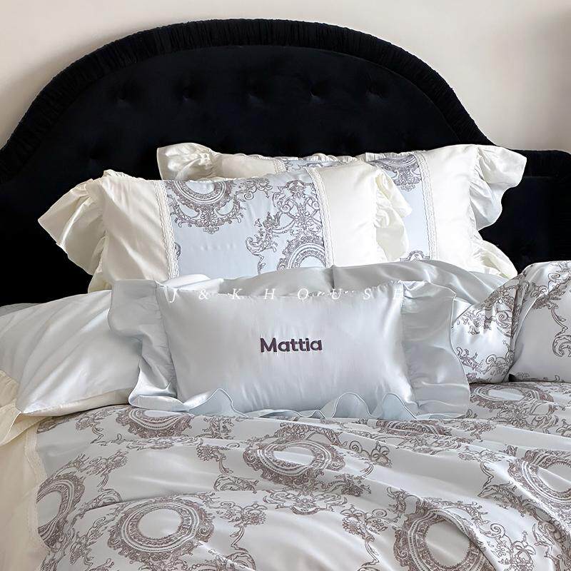 Girlish|法式复古秋冬印花纯棉床盖四件套荷叶边全棉被套床上用品