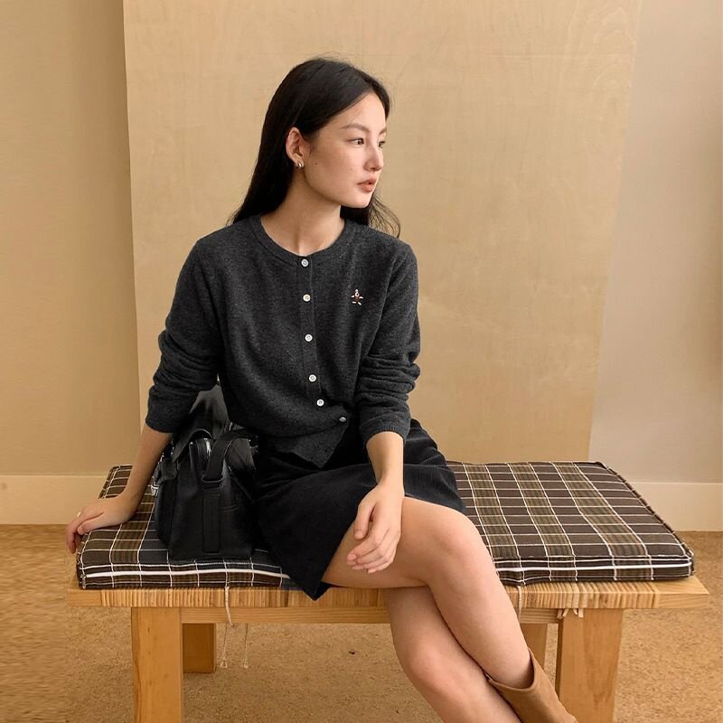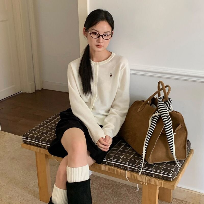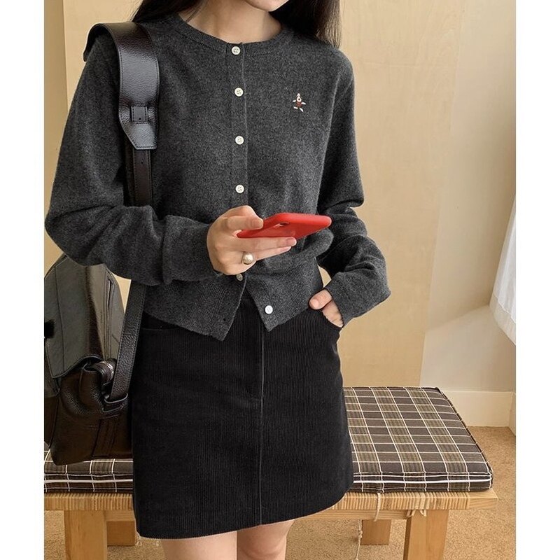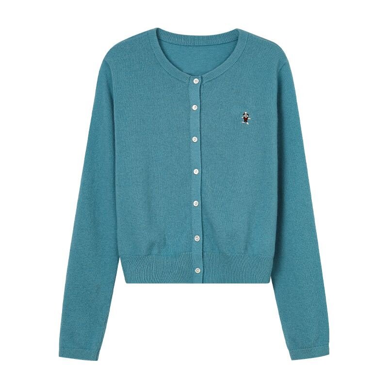 淘宝Charmi小妖,TG2024秋冬新款洋气百搭圆领针织羊毛开衫女卡通小刺绣毛衣23948