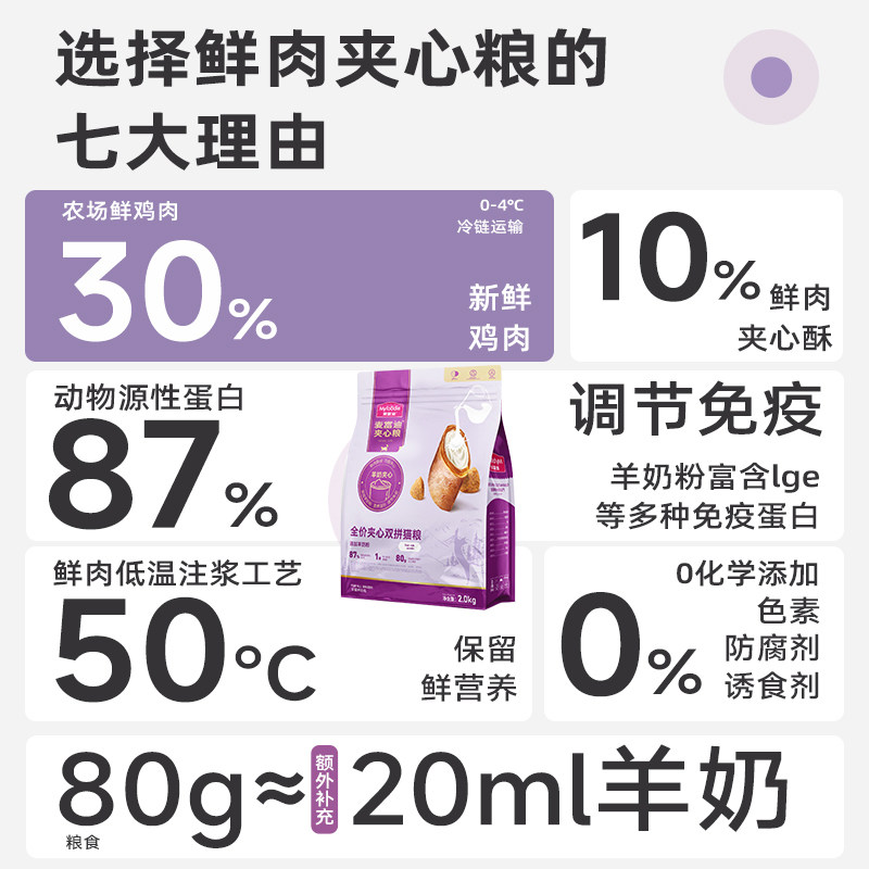 天猫淘精选官方旗舰店,麦富迪夹心双拼猫粮2kg全价鲜肉添加羊奶粉高营养成幼猫通用