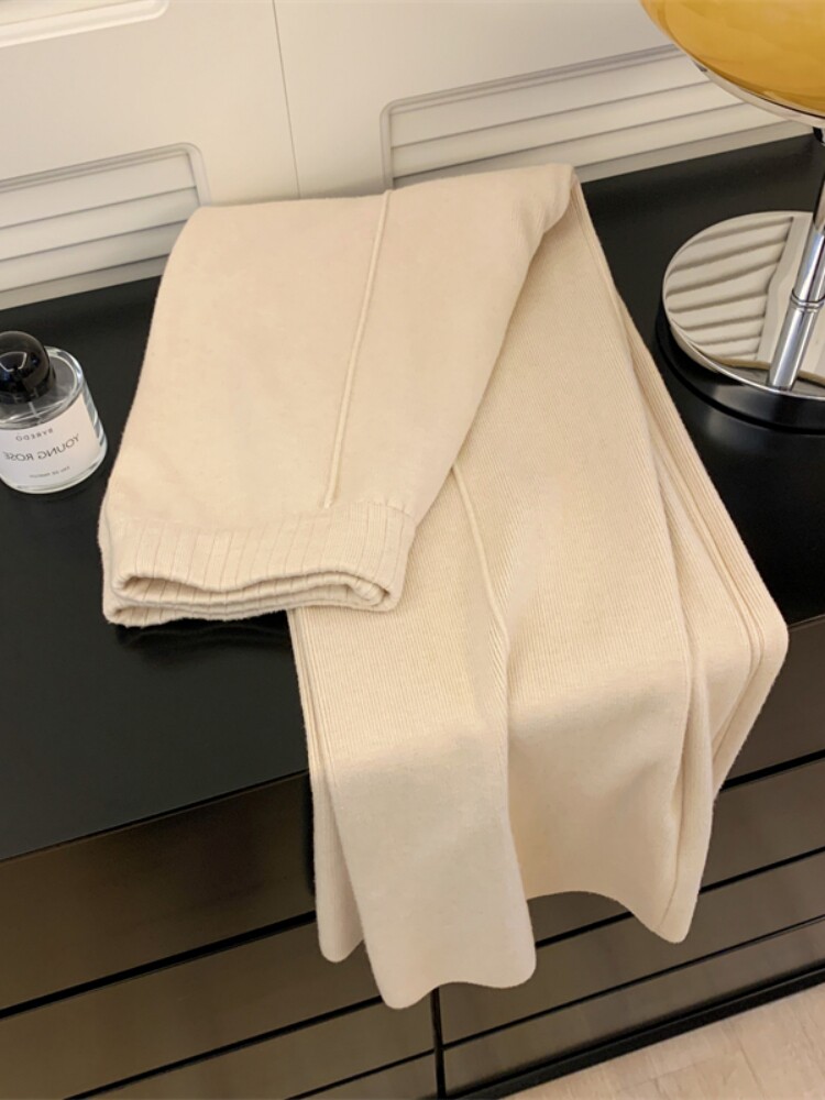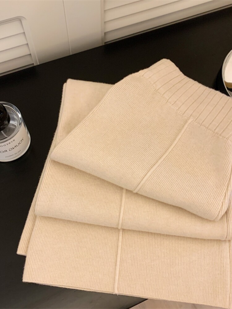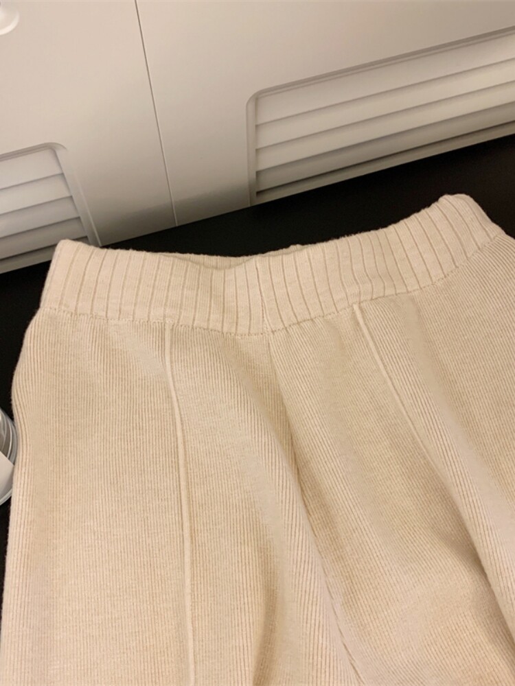 松紧腰休闲阔腿裤长裤毛线针织裤