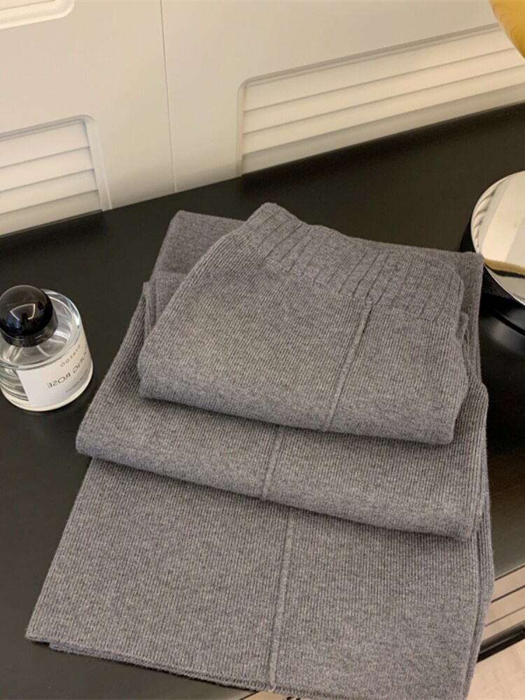 灰色阔腿裤女秋冬高级感羊毛针织裤小个子休闲直筒裤早春显瘦裤子