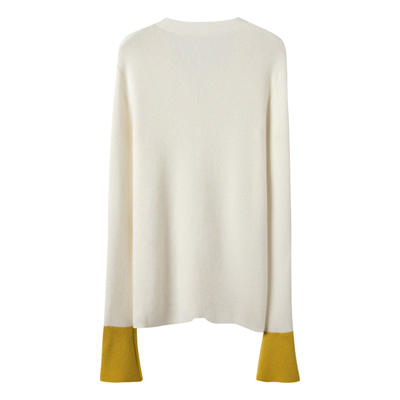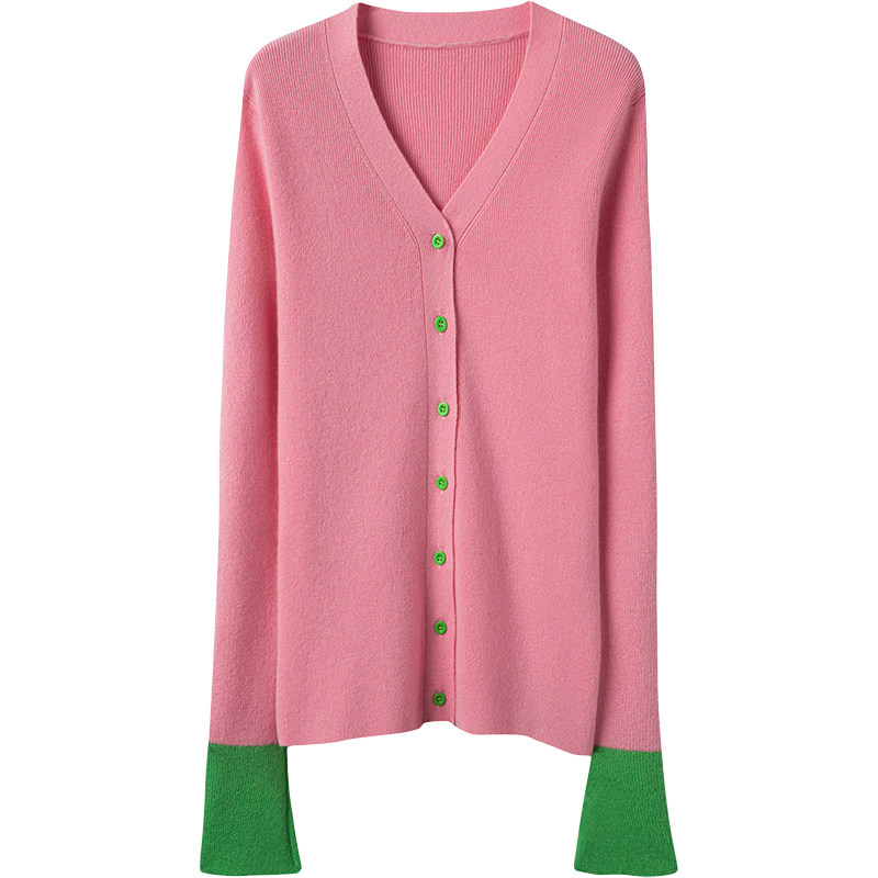 悠悠我心!撞色喇叭袖纯山羊绒开衫羊绒毛衣针织开衫修身百搭显瘦