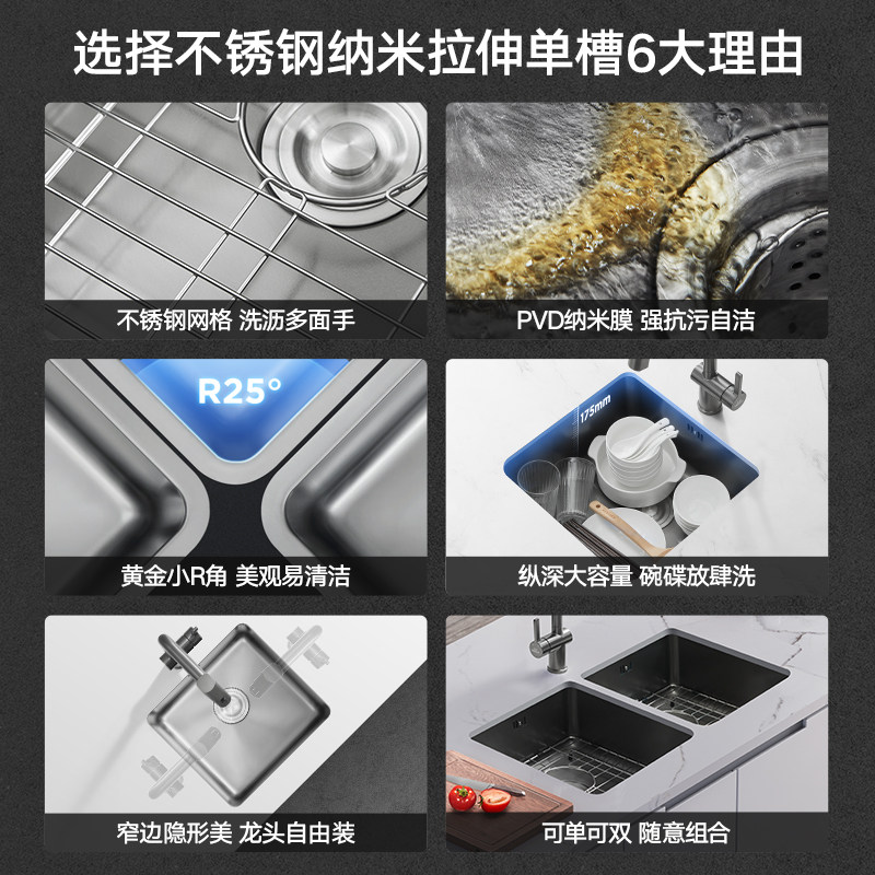 淘宝悍高直营店,悍高吧台迷你圆形水槽小方槽家用304不锈钢纳米水槽洗菜盆洗碗池