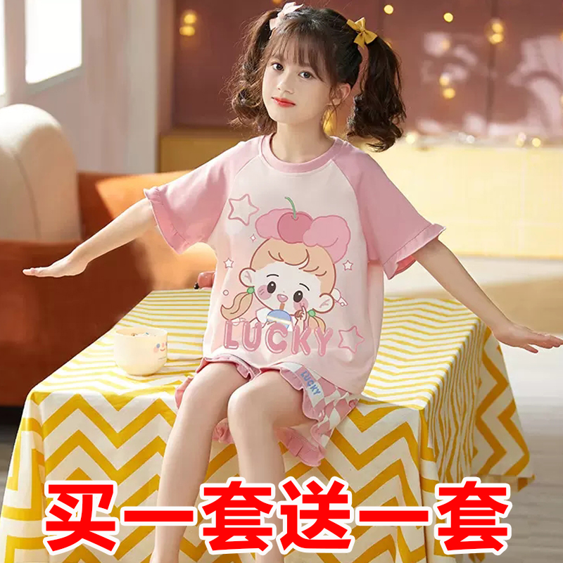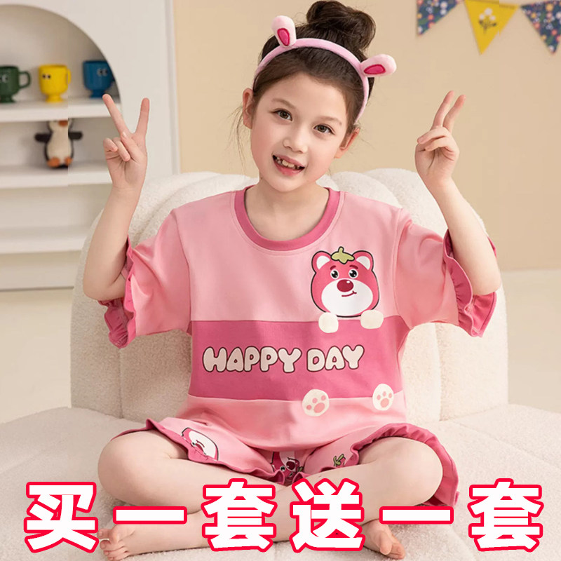 淘宝欣仪家居服,2024新款女童睡衣夏款纯棉短袖