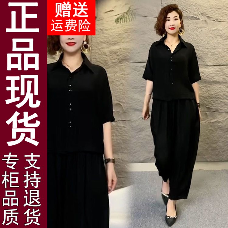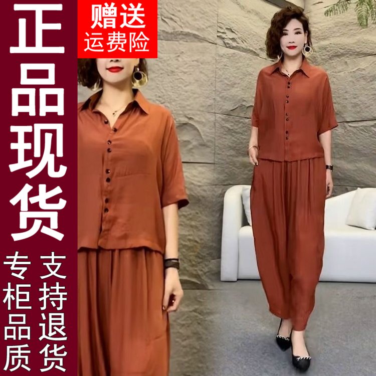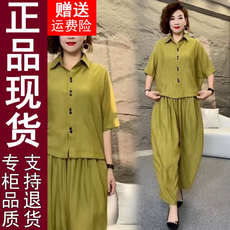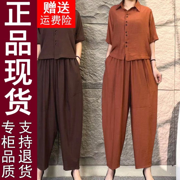 淘宝专柜品牌正品特卖店,正品原版高档棉麻套装女2024夏季新款时尚减龄大码女装宽松两407