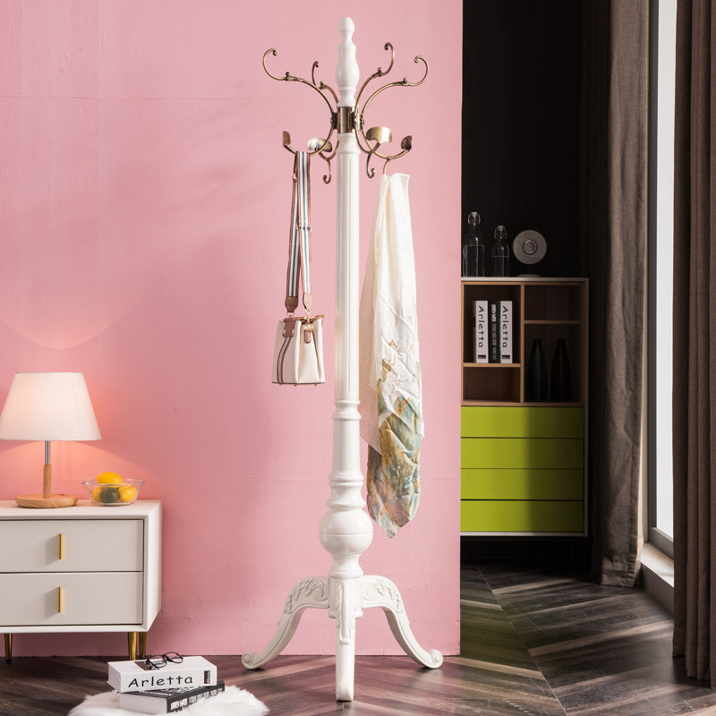 高档实木衣帽架美式卧室落地挂衣架客厅欧式包别墅白色衣服架子