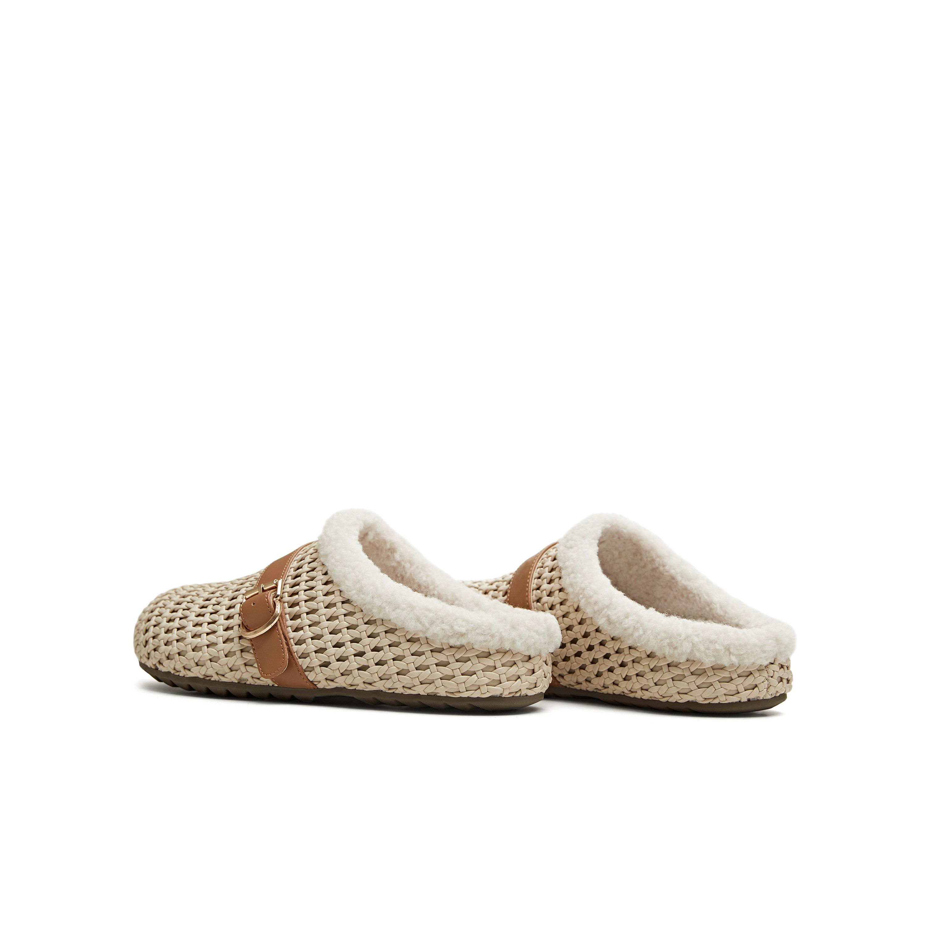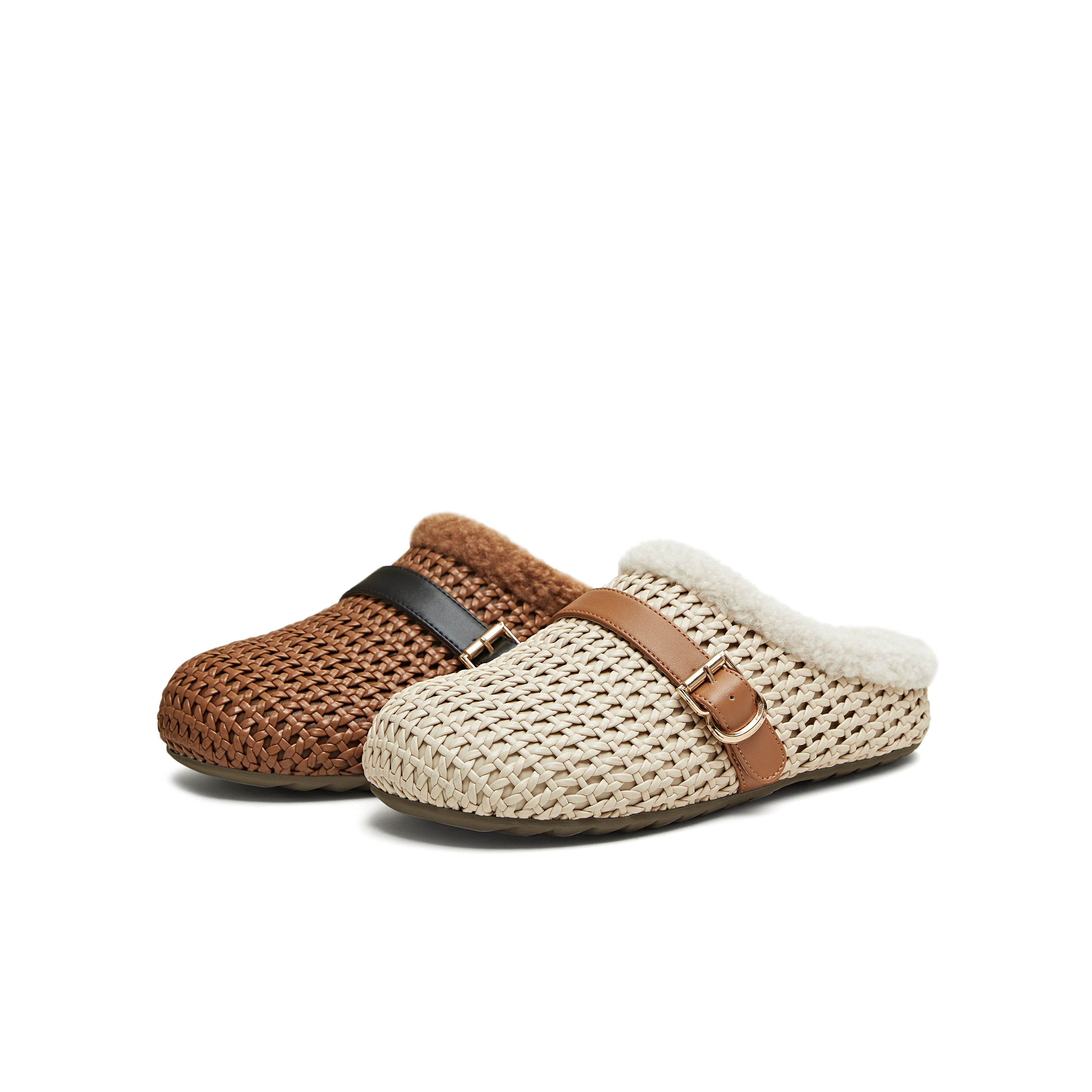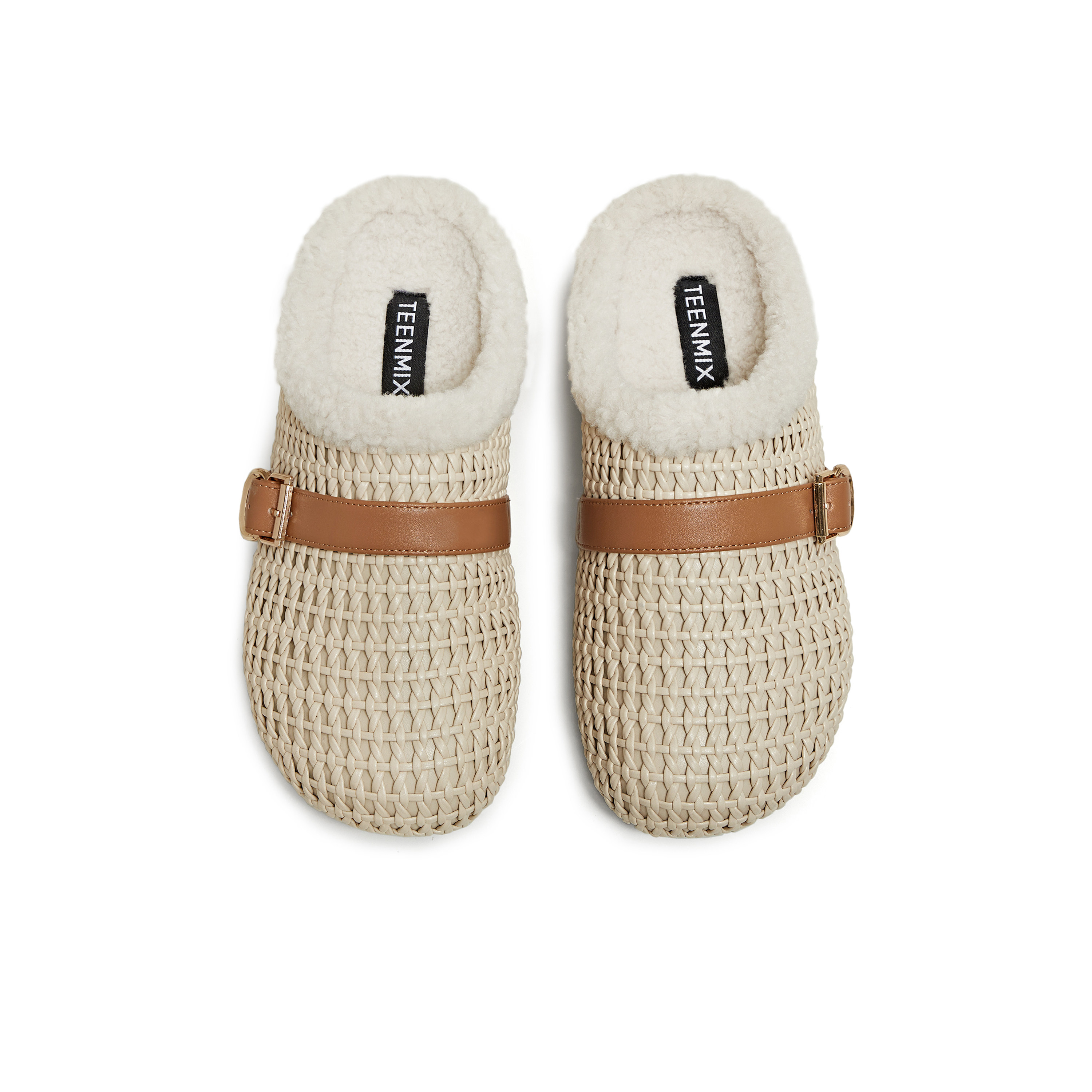 天猫天美意teenmix官方旗舰店,天美意复古厚底勃肯鞋加绒毛毛鞋女包头半拖鞋2025冬新款KK068DH5,镂空复古编织百搭