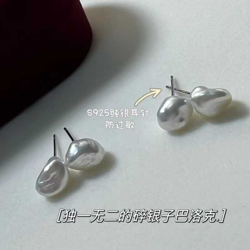 天然巴洛克珍珠耳钉S925银针异形碎银子耳饰网红爆款气质女人耳环