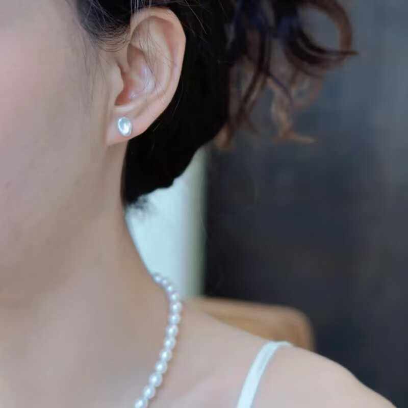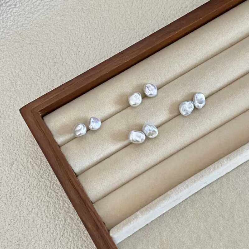 天然淡水珍珠S925银碎银子耳钉异形不规则气质潮女精致巴洛克耳饰