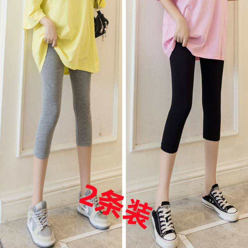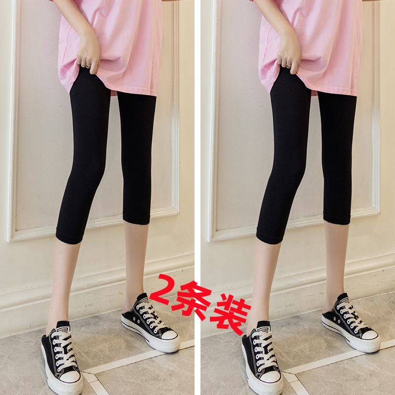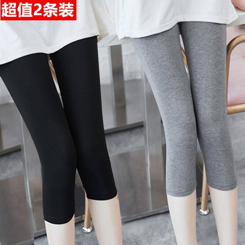 2条装?七分打底裤女夏外穿大码莫代尔高腰弹力薄款瑜伽芭比紧身裤