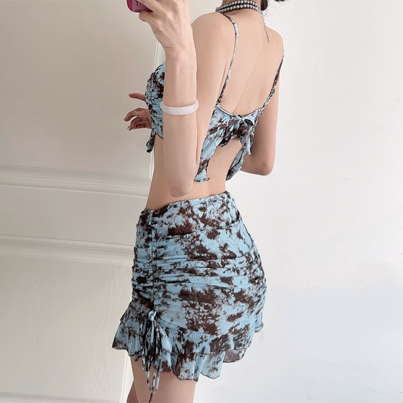 泳衣女比基尼甜美纯欲风性感抹胸显白三件套包裙沙滩度假海边泳装