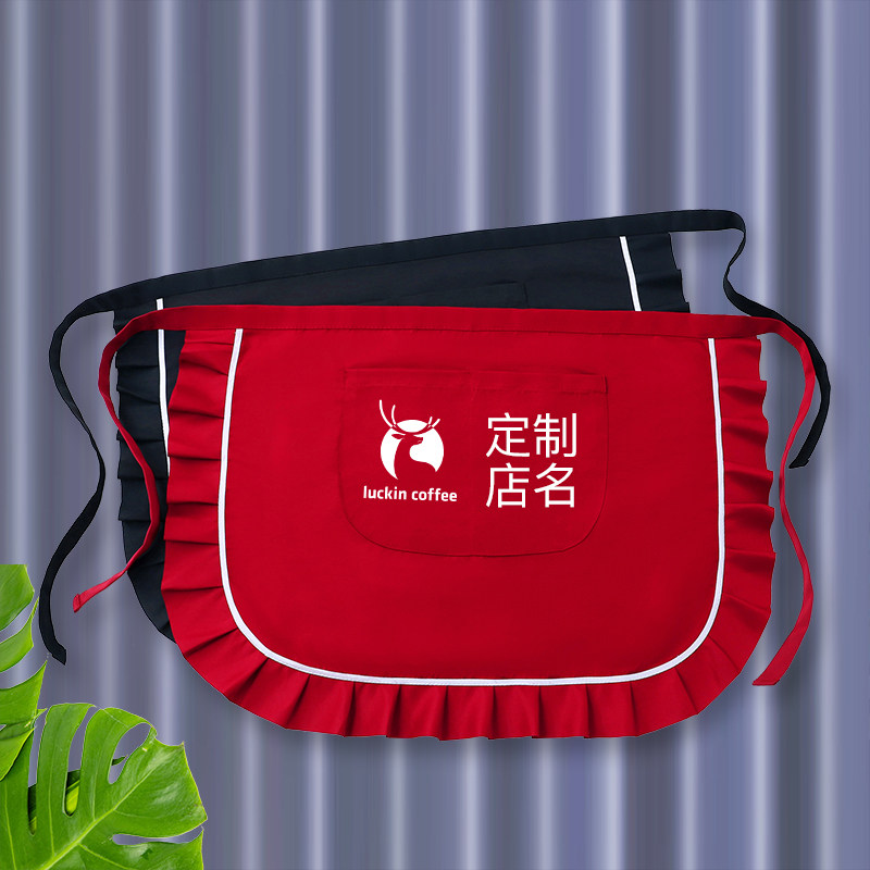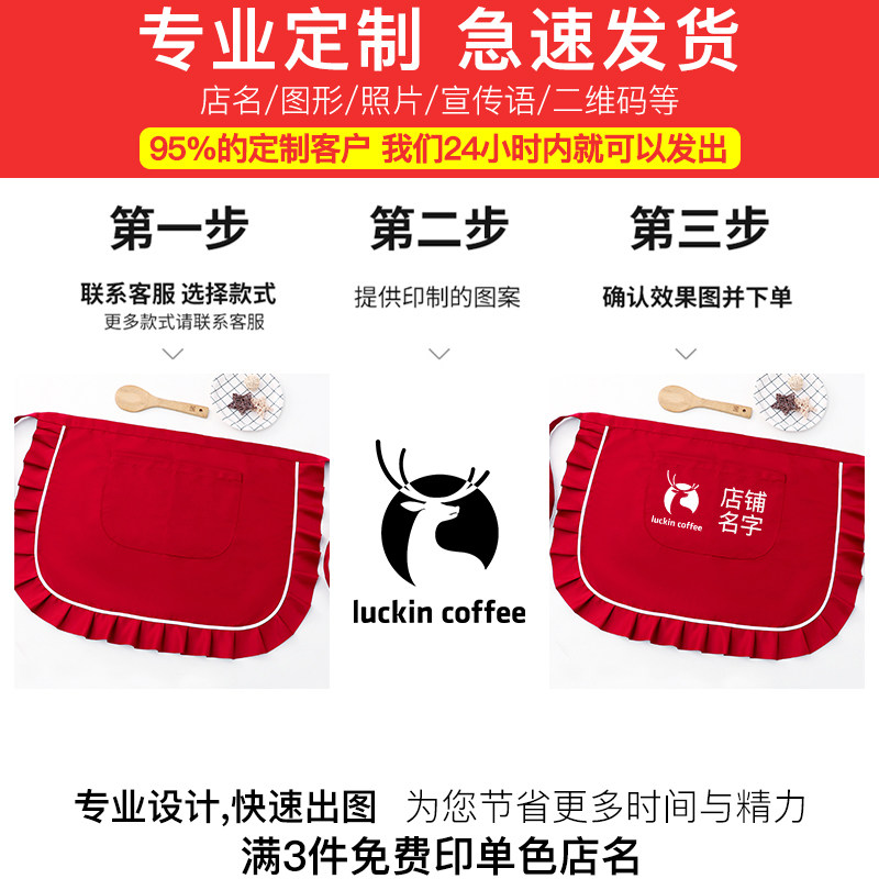 咖啡店半身围裙纯棉餐饮专用2023新款网红定制logo印字工作服女士