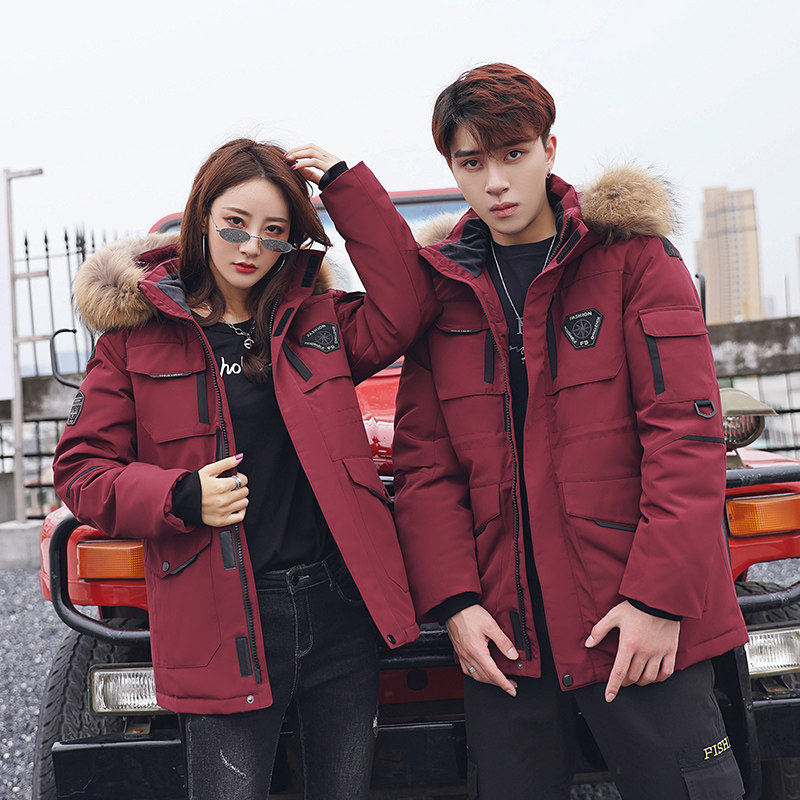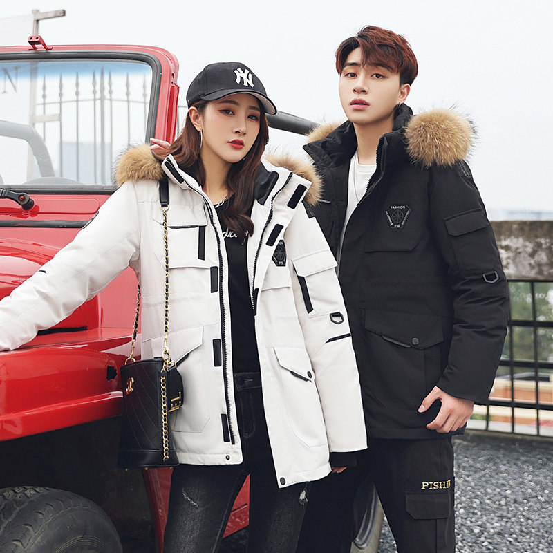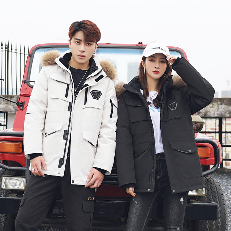 反季清仓羽绒服男女中长款2023秋冬新情侣宽松工装加厚冬季外套潮